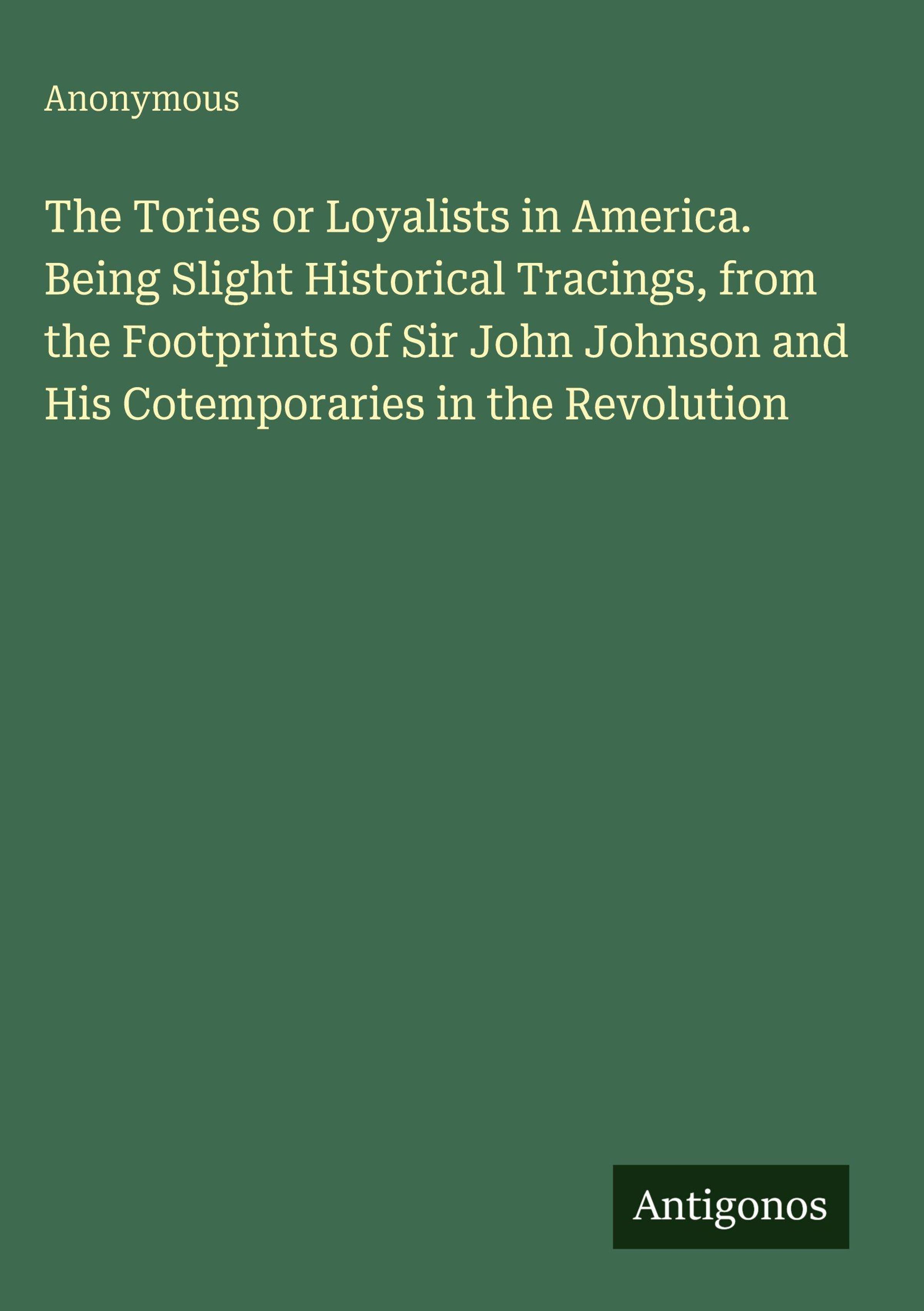 Anonymous: The Tories or Loyalists in America. Being Slight Historical Tracings, from the Footprints of Sir John..., Gebunden