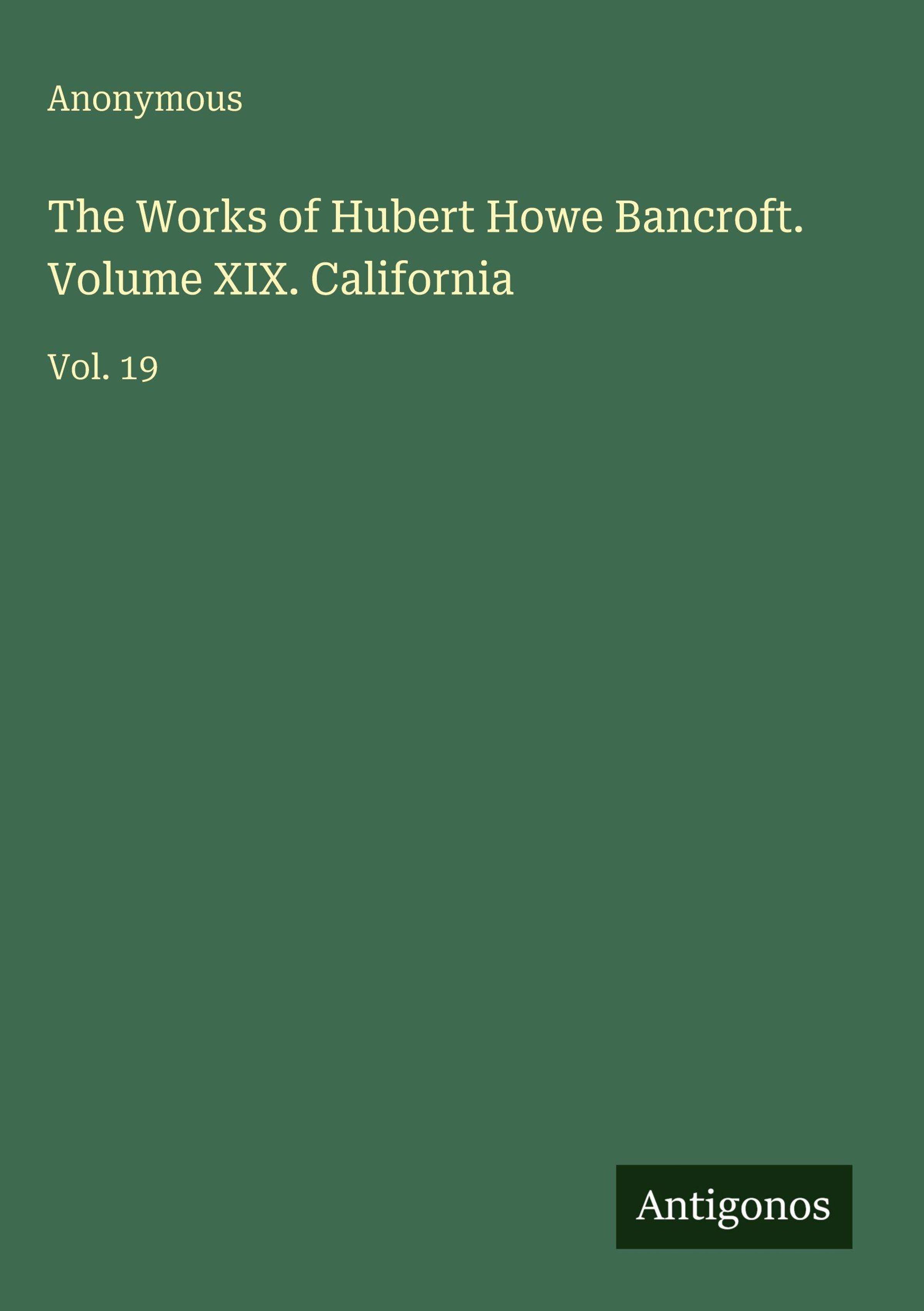 Anonymous: The Works of Hubert Howe Bancroft. Volume XIX. California, Gebunden