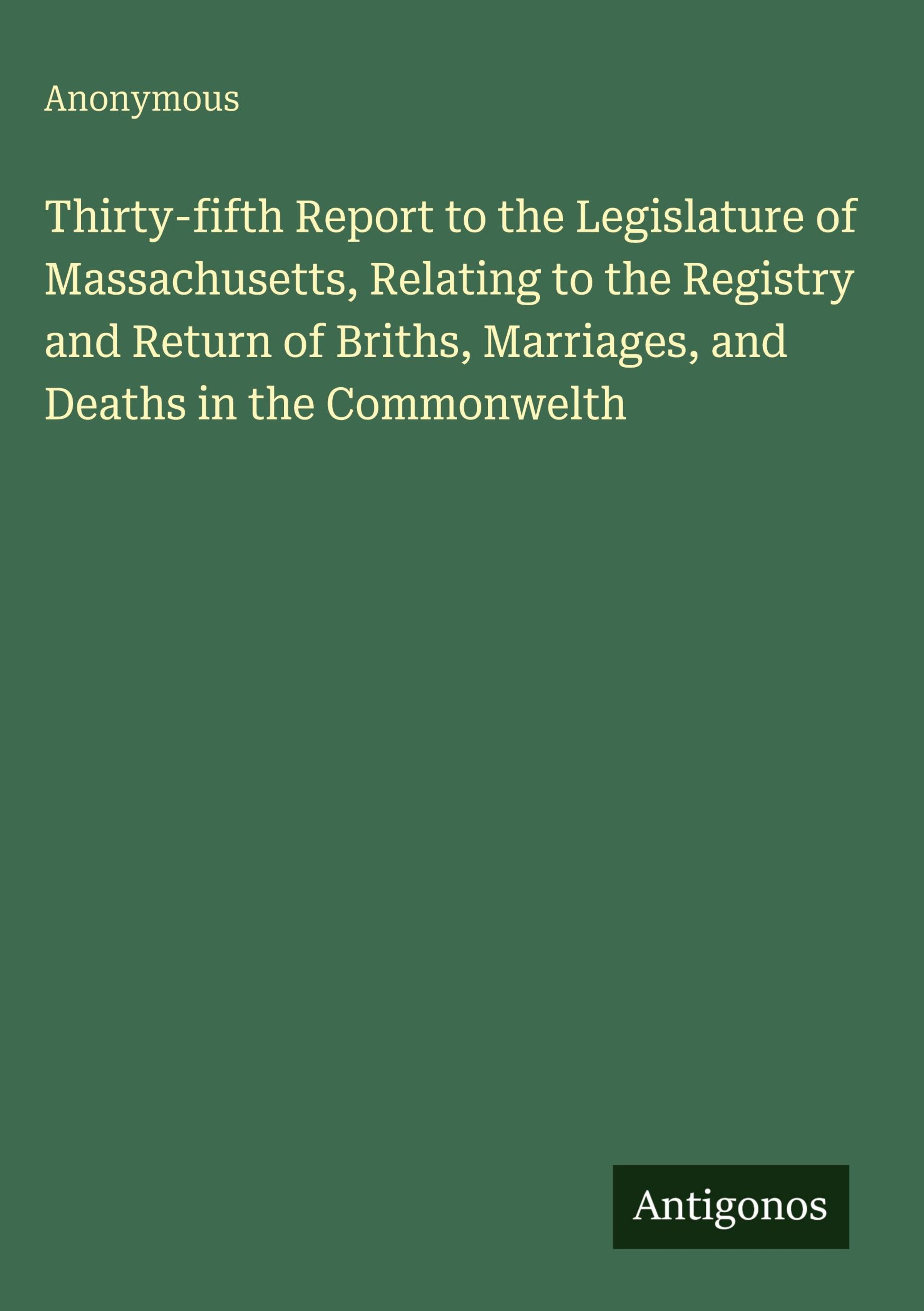 Anonymous: Thirty-fifth Report to the Legislature of Massachusetts, Relating to the Registry and Return of..., Gebunden