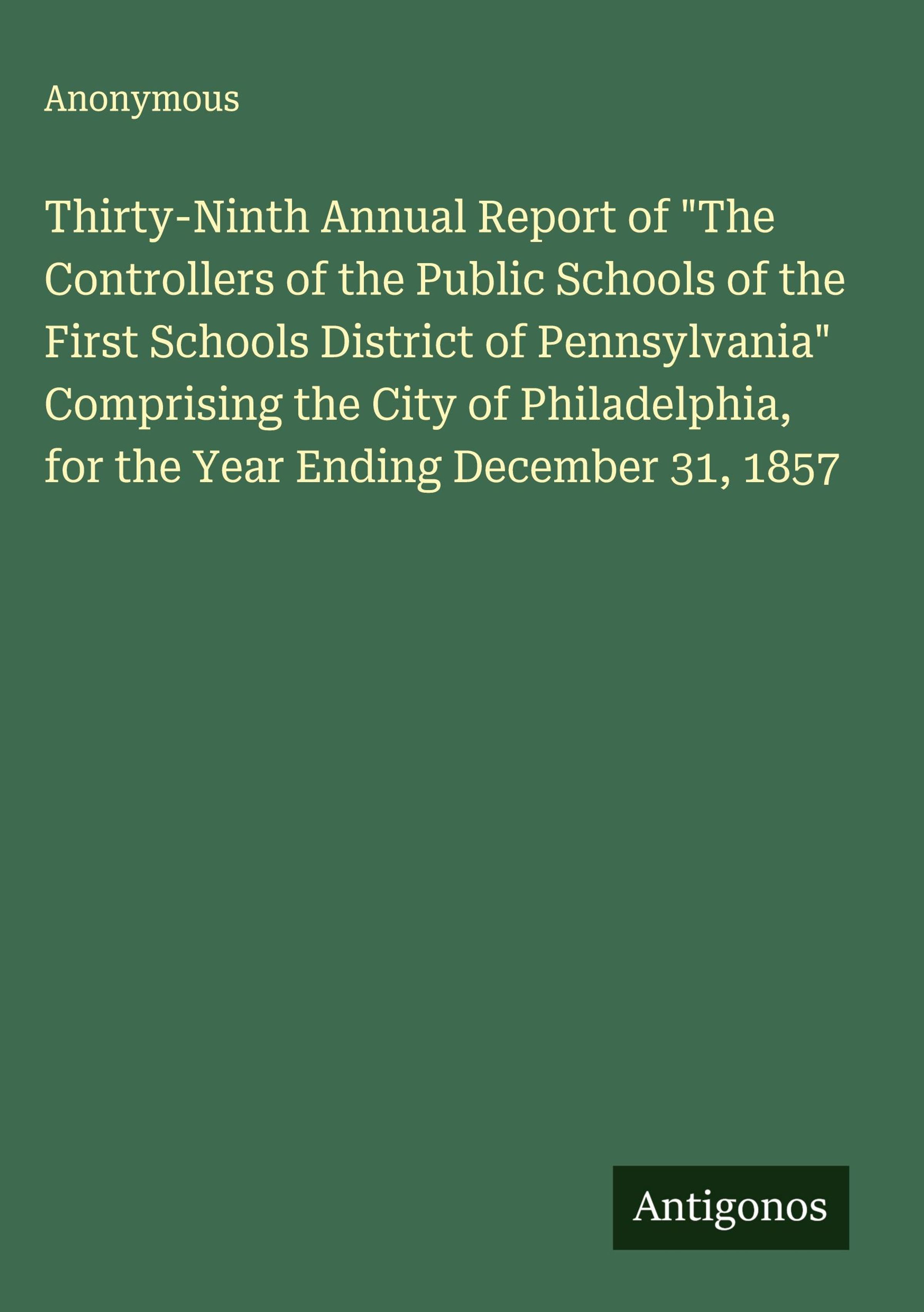 Thirty-Ninth Annual Report of "The Controllers of the Public Schools of the First Schools District of Pennsylvania" Comprising the City of Philadelphia, for the Year Ending December 31, 1857