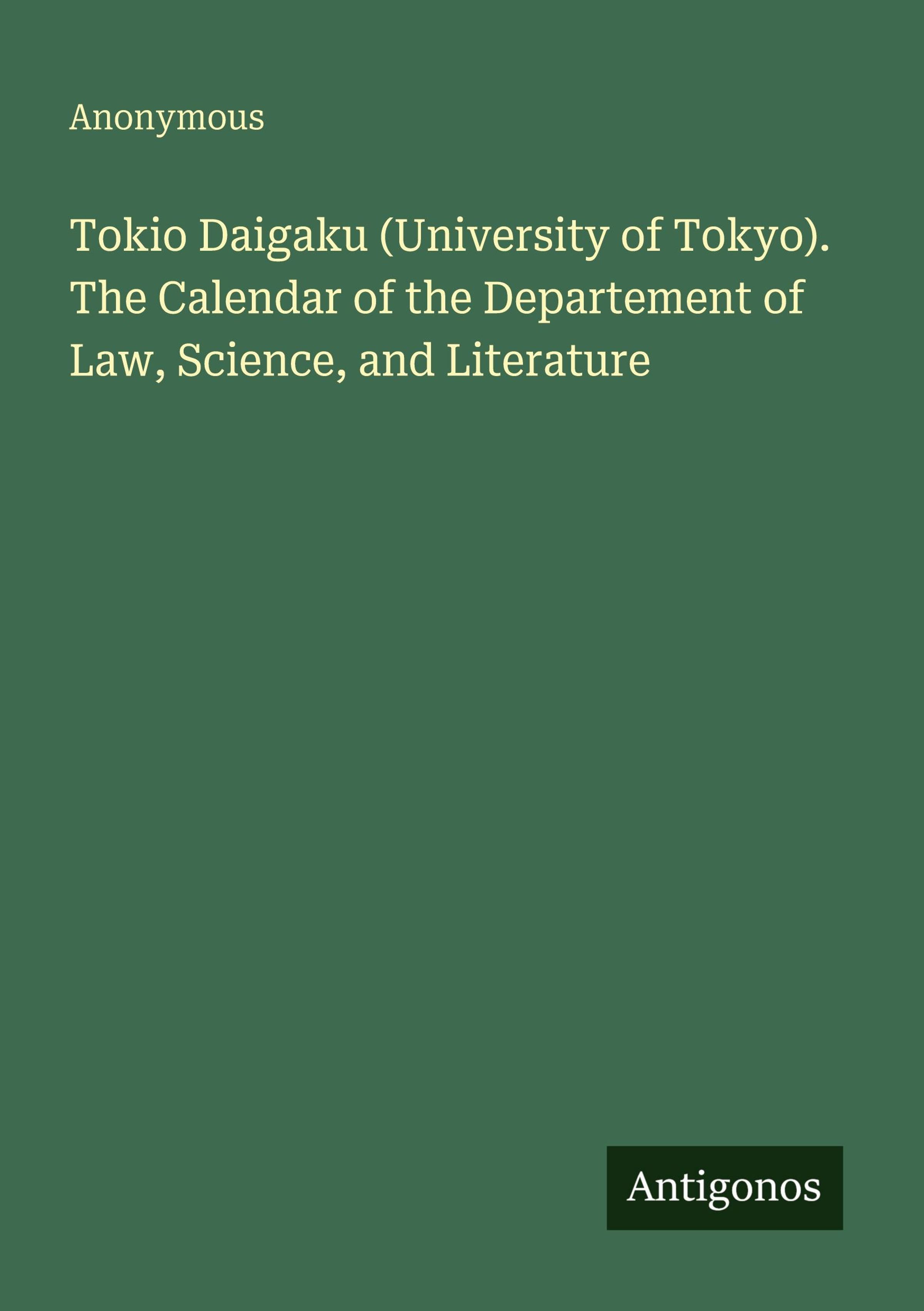 Tokio Daigaku (University of Tokyo). The Calendar of the Departement of Law, Science, and Literature