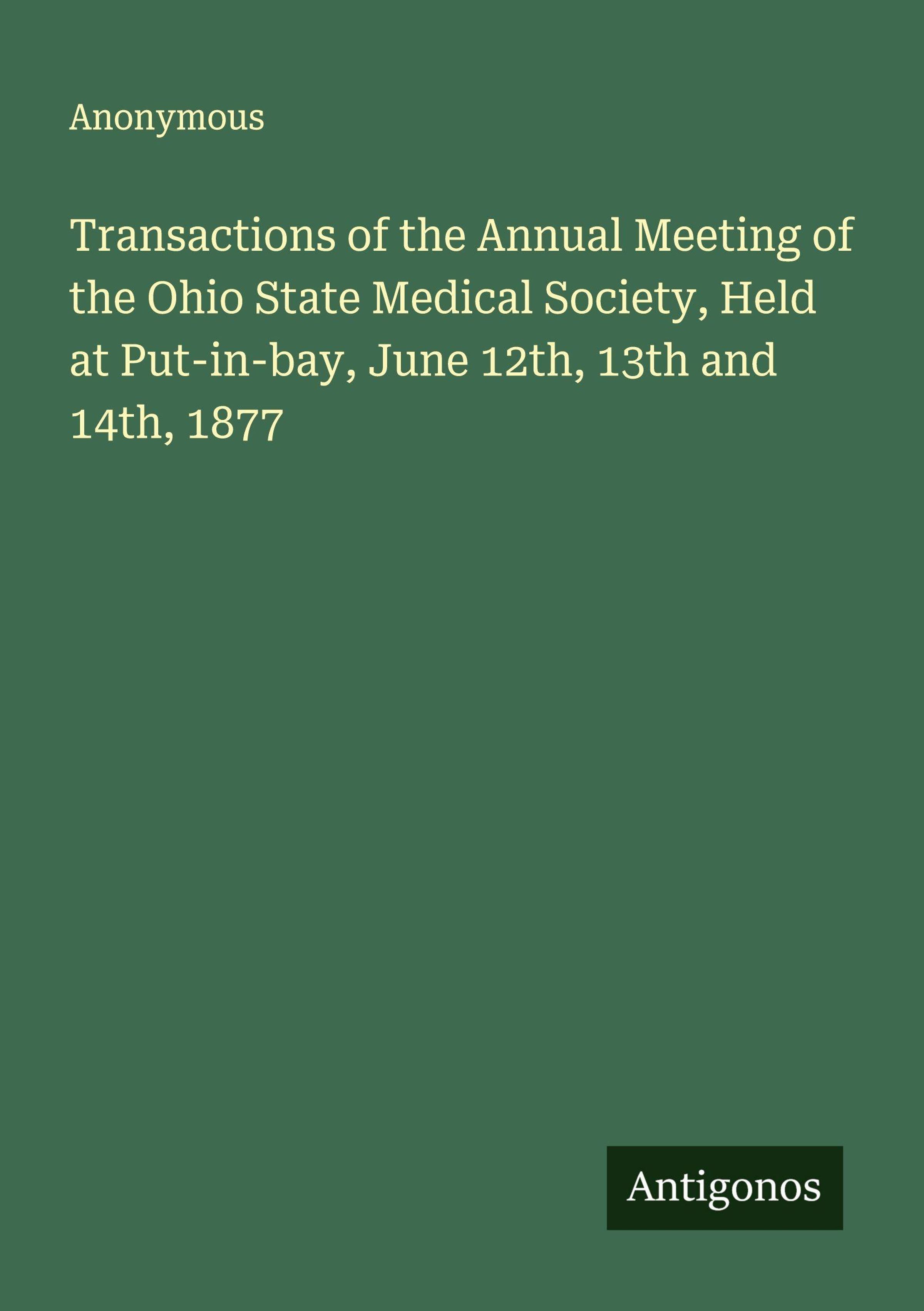 Transactions of the Annual Meeting of the Ohio State Medical Society, Held at Put-in-bay, June 12th, 13th and 14th, 1877