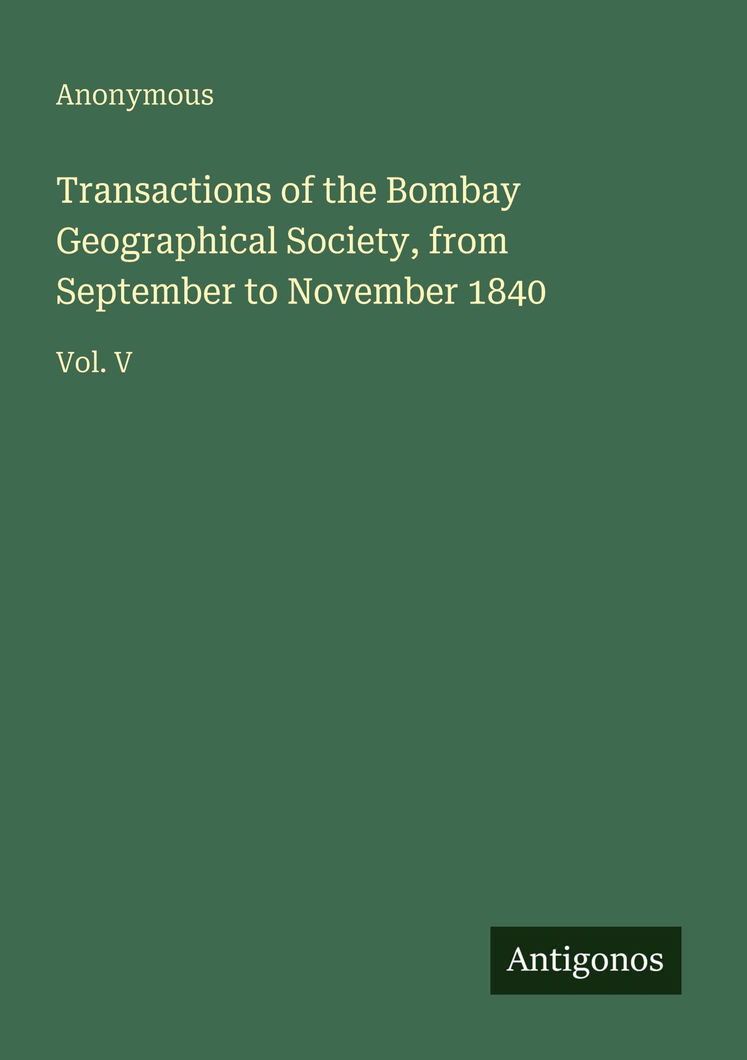 Anonymous: Transactions of the Bombay Geographical Society, from September to November 1840, Kartoniert / Broschiert