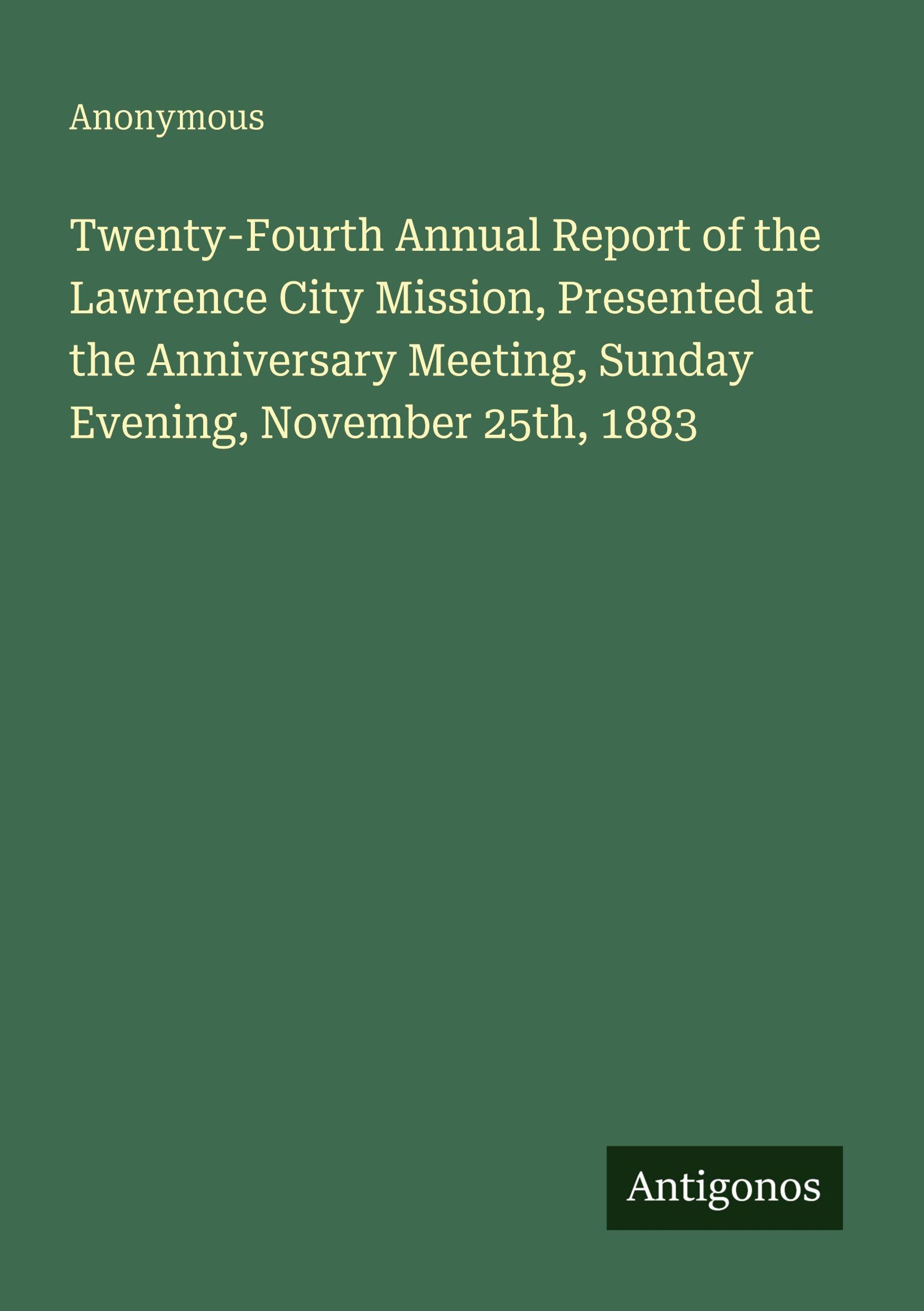 Anonymous: Twenty-Fourth Annual Report of the Lawrence City Mission, Presented at the Anniversary Meeting,..., Kartoniert / Broschiert