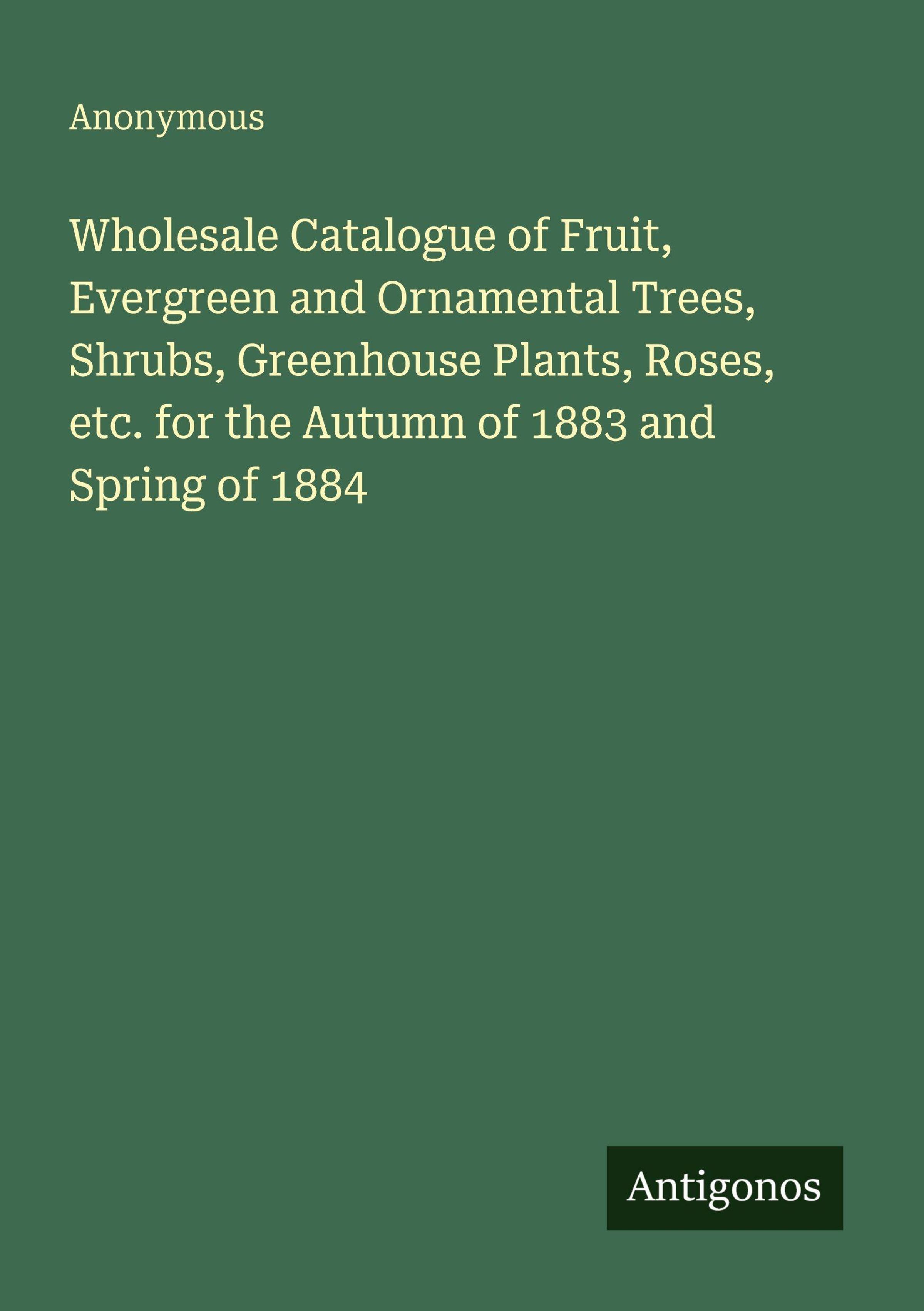 Wholesale Catalogue of Fruit, Evergreen and Ornamental Trees, Shrubs, Greenhouse Plants, Roses, etc. for the Autumn of 1883 and Spring of 1884