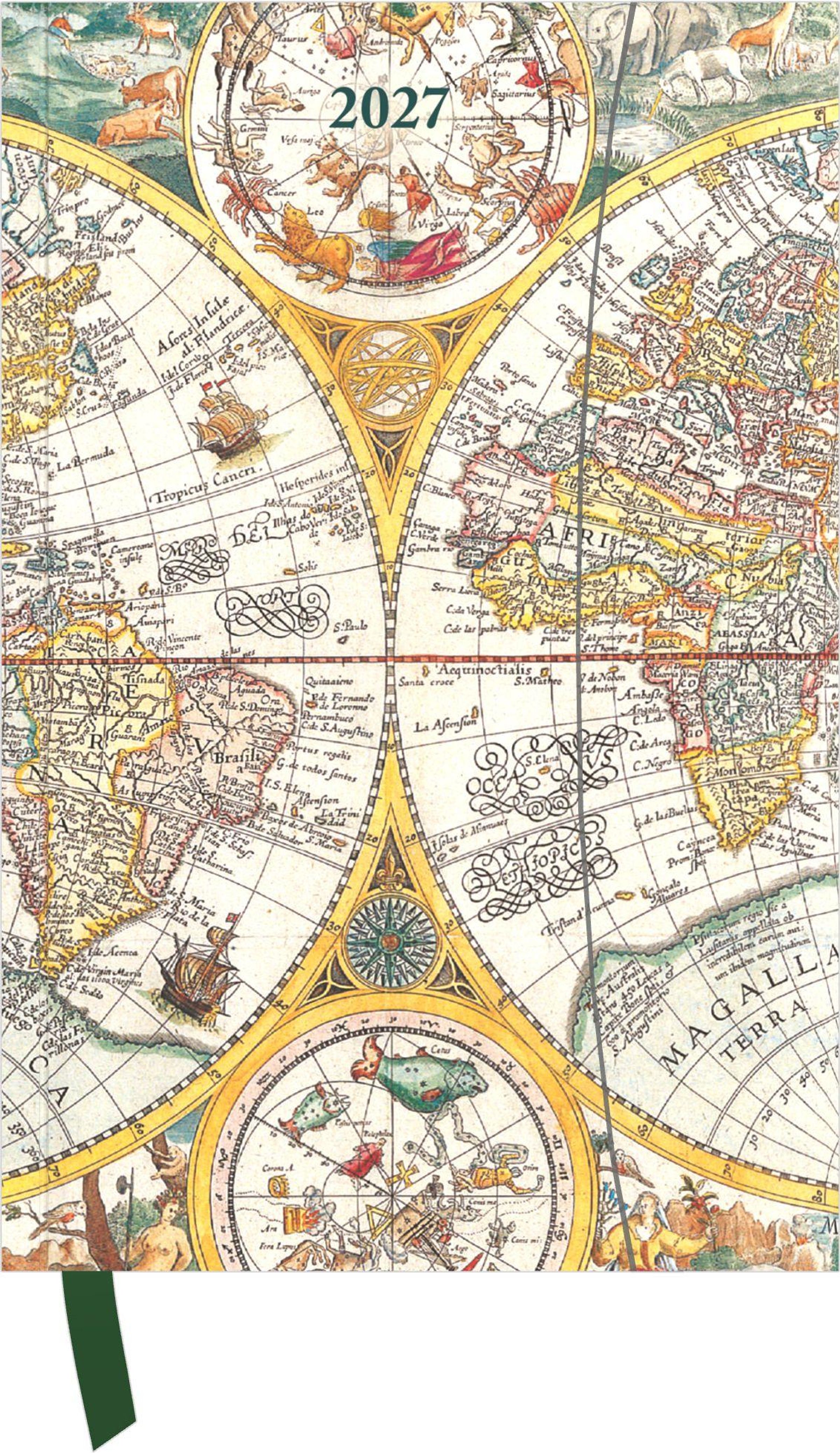 Der teNeues Antique Maps 2027 Buchkalender im nostalgischen Vintage-Weltkarten-Design ist ein kompakter Begleiter für unterwegs. Ideal für alle, die sich für Geografie begeistern oder gerne reisen -- mit diesem stilvollen Diary haben Sie die große weite Welt immer vor Augen.