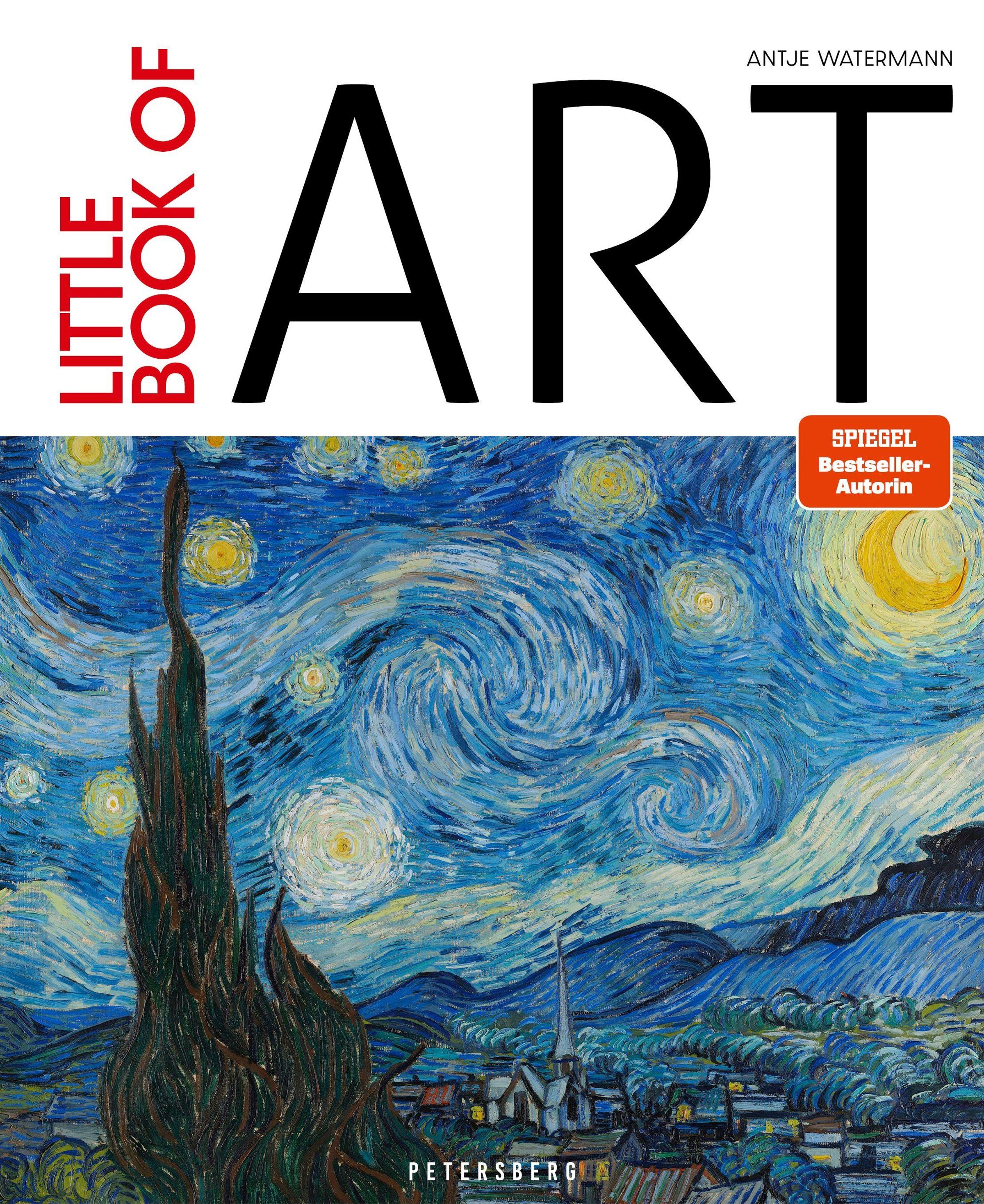 "LITTLE BOOK OF ART" steht oben in großen Buchstaben, darunter ein Gemälde mit einem wirbelnden Nachthimmel und Zypressen., Buch