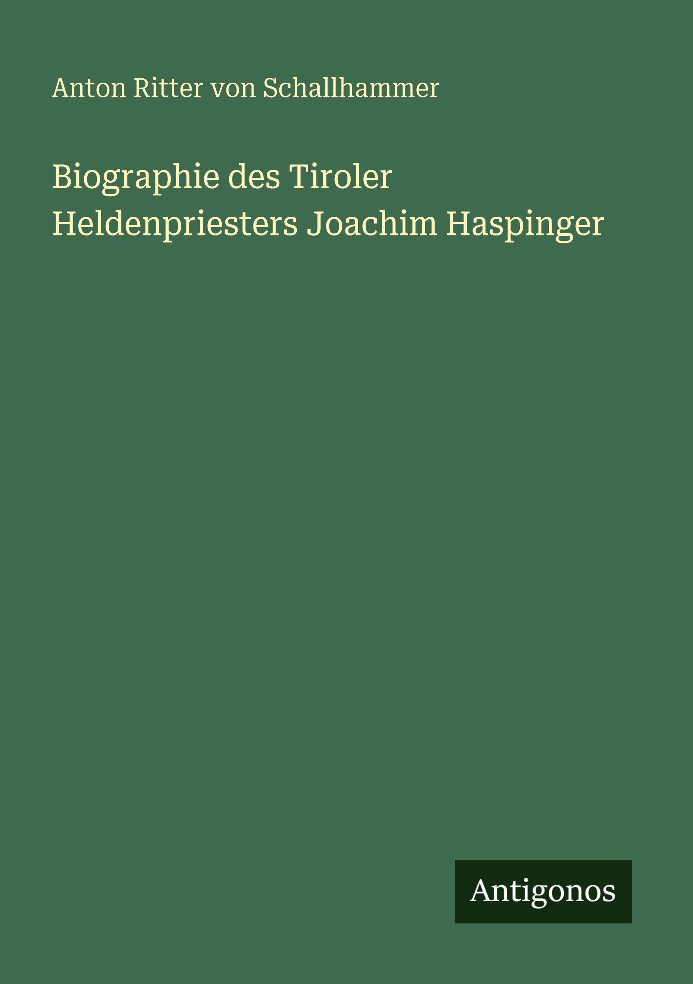 Anton Ritter Von Schallhammer: Biographie des Tiroler Heldenpriesters Joachim Haspinger, Kartoniert / Broschiert