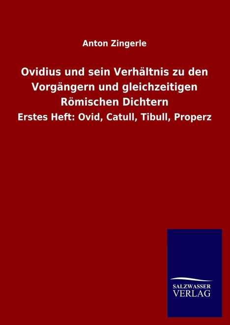 Anton Zingerle: Ovidius und sein Verhältnis zu den Vorgängern und gleichzeitigen Römischen Dichtern, Gebunden