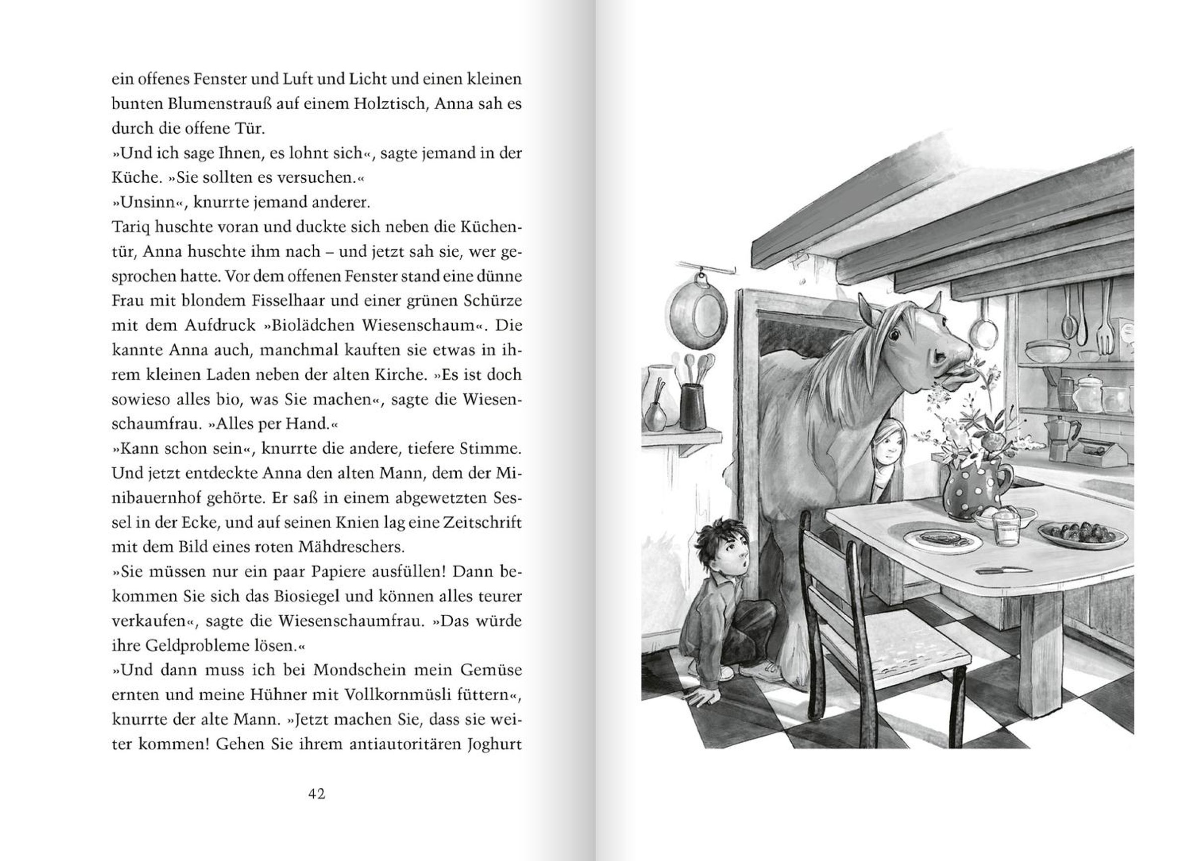 In "Manchmal muss man Pferde stehlen" von Antonia Michaelis entfaltet sich die ungewöhnliche Freundschaft zwischen der schüchternen Anna und dem draufgängerischen Tariq, die trotz ihrer grundverschiedenen Persönlichkeiten eine tiefe Verbindung an der Pferdeweide knüpfen. Während Anna das Reiten erlernen soll, um ihre Ängstlichkeit zu überwinden, verfolgt Tariq das Ziel, mit Hilfe eines Pferdes seinen Bruder zu finden, von dem er seit ihrer Flucht aus der Heimat und der Ankunft in Deutschland getrennt wurde. Ihr gemeinsames Abenteuer, das sie auf den Rücken der Pferde Wackelpo und Apfelmütze quer durch Deutschland führt, ist nicht nur eine Flucht vor Verbrechern und der Polizei, sondern auch eine Reise zu sich selbst, bei der sie immer wieder von Kühen umgeben sind - ein skurriles, aber prägendes Element ihrer Odyssee.