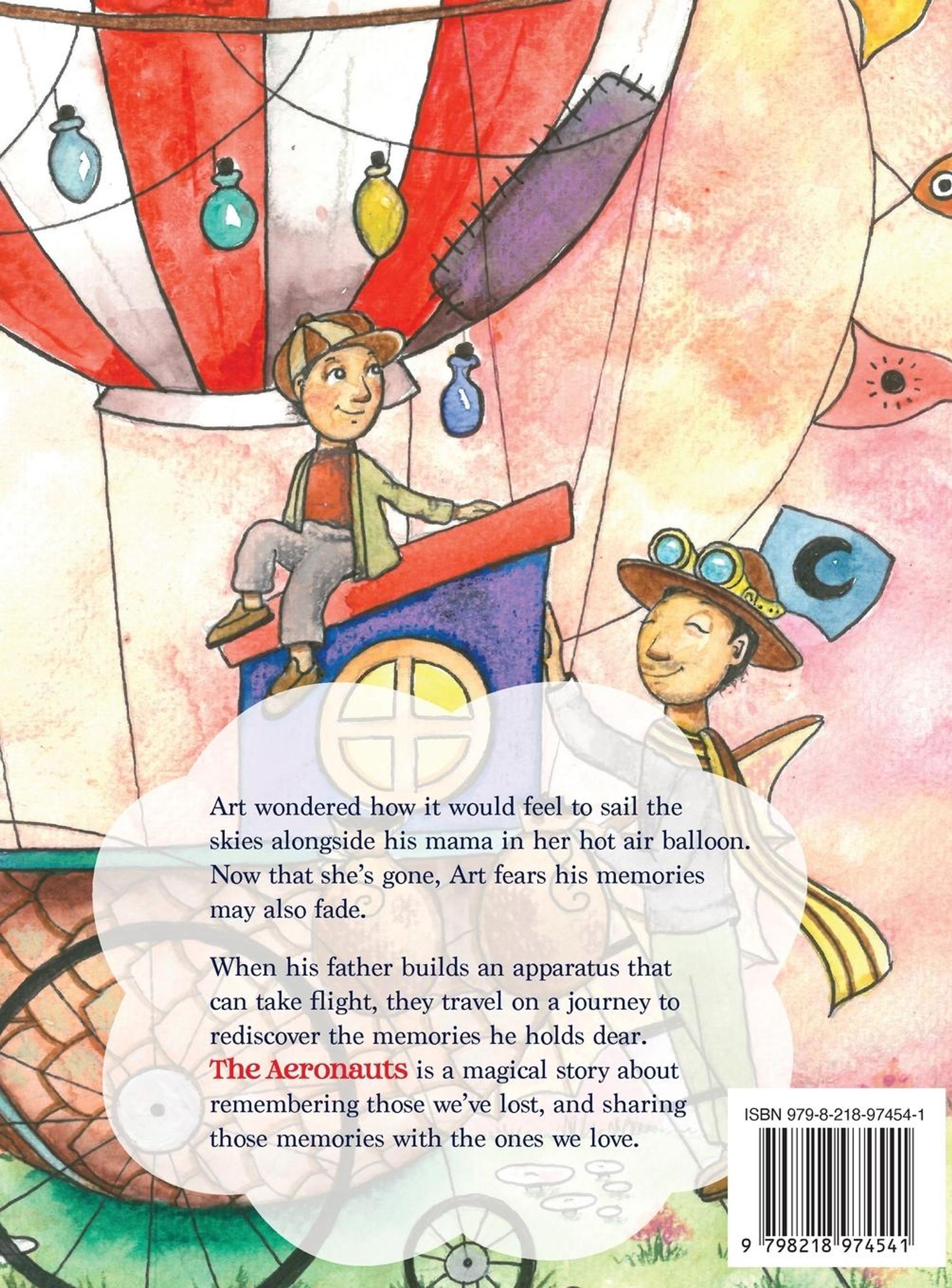 Art wondered how it would feel to sail the skies alongside his mama in her hot air balloon. Now that she's gone, Art fears his memories may also fade. When his father builds an apparatus that can take flight, they travel on a journey to rediscover the memories he holds dear. The Aeronauts is a magical story about remembering those we've lost, and sharing those memories with the ones we love.