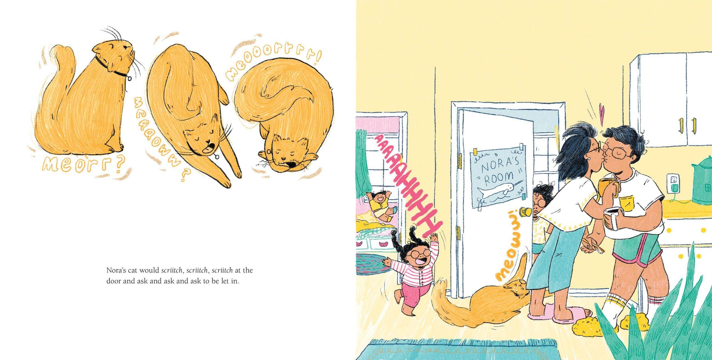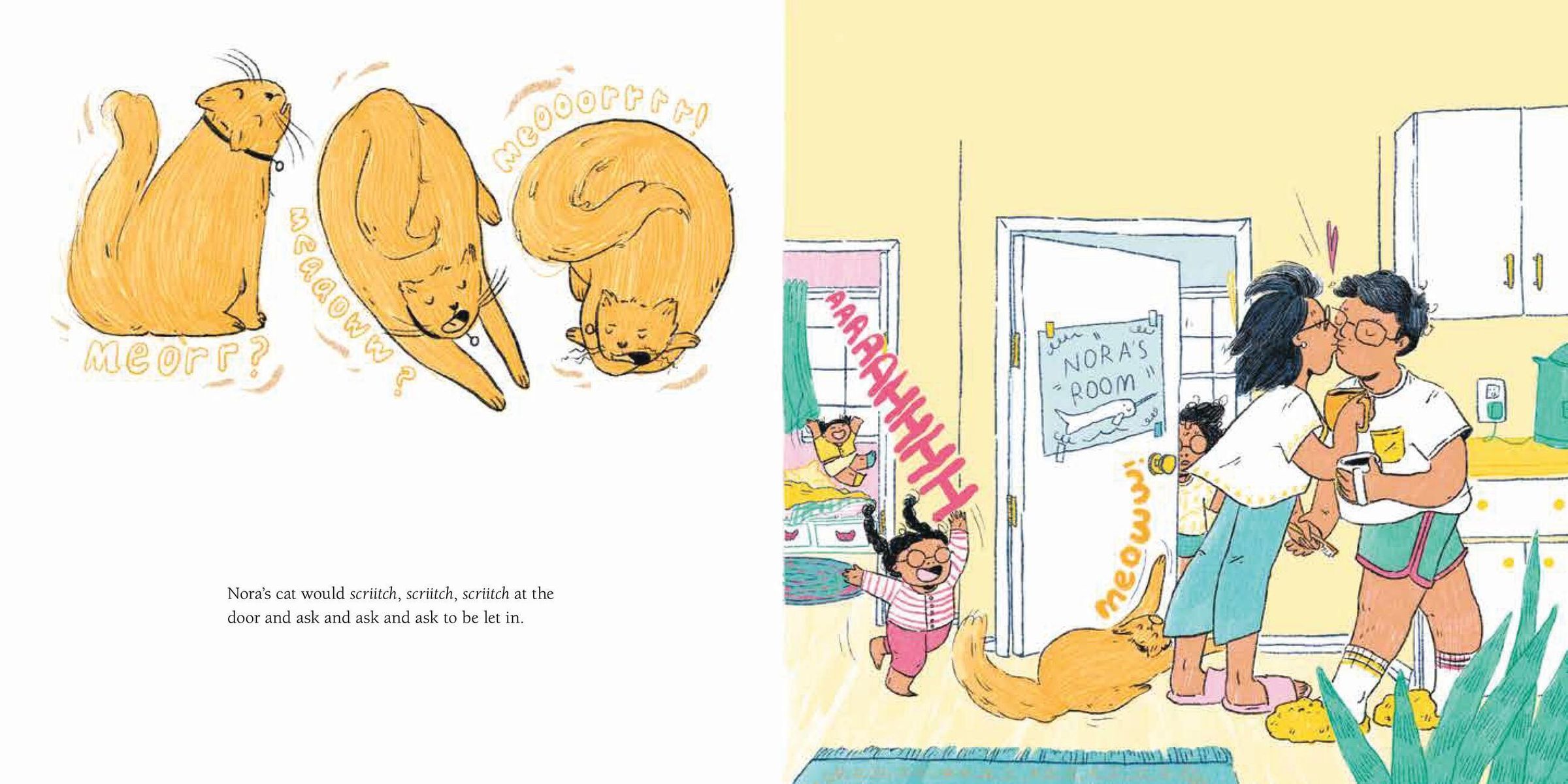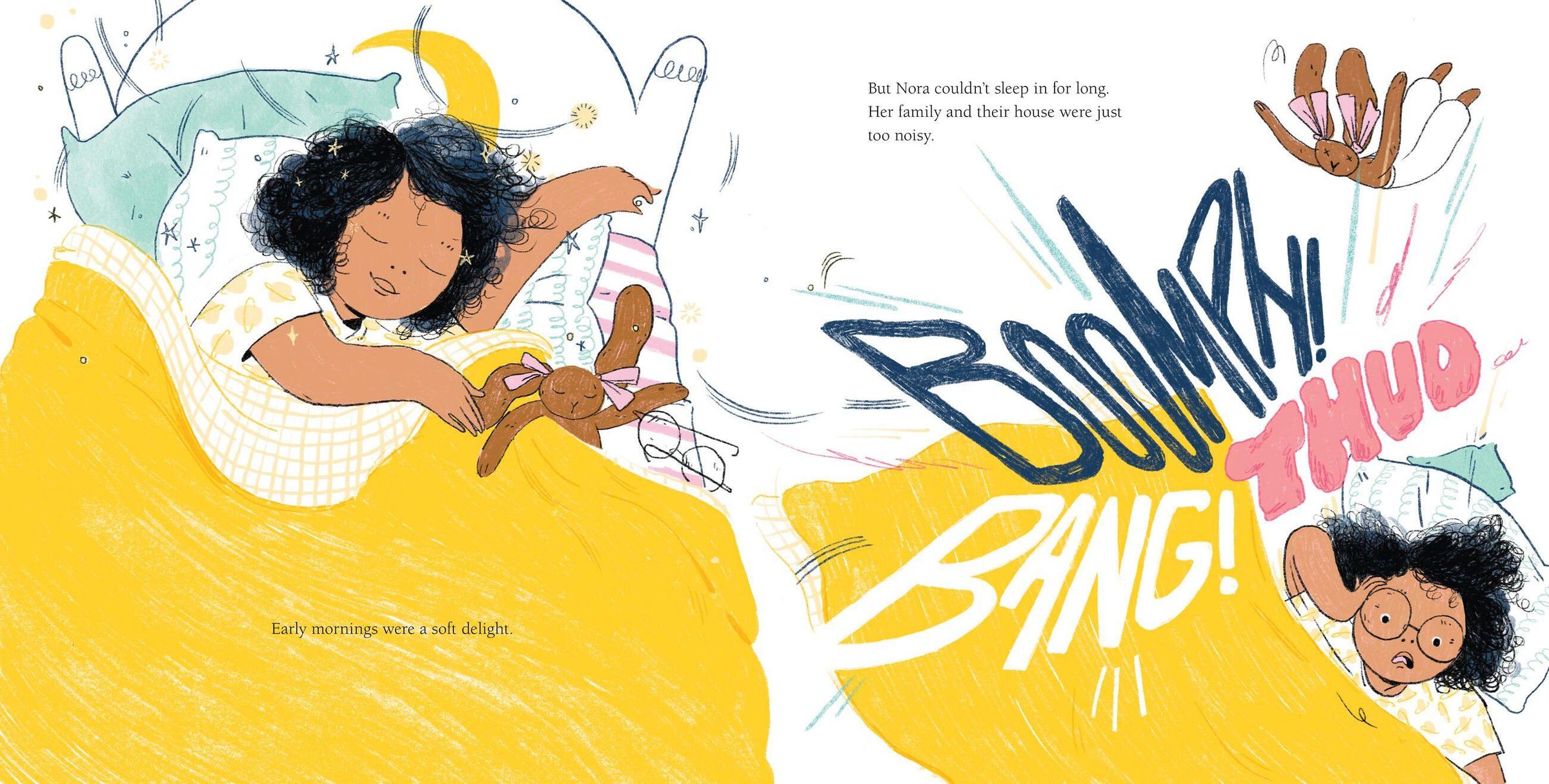 The daytime world is much too loud for Nora. At home, the vacuum vrooms, the television blares and her twin sisters make a racket. Life outside the house is no better, with children splashing around the pool, carts squeaking at the supermarket and cars honking in the street. But when nighttime arrives, Nora can escape to her room, where she finally gets to hear the gentle brushing of branches against her windowsill and the soothing sounds of her family from the other side of the house. For Nora, nighttime is perfectly delightful.