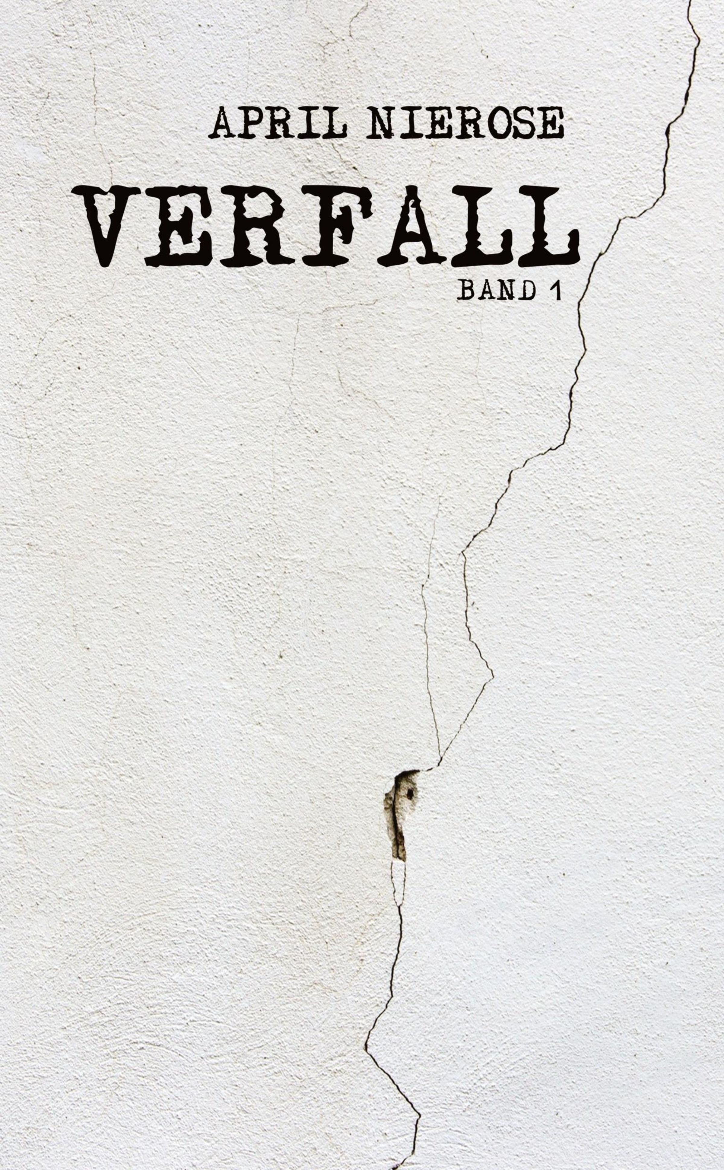 "APRIL NIEROSE VERFALL BAND 1" auf einer gecrackten hellen Wand als Hintergrund., Buch