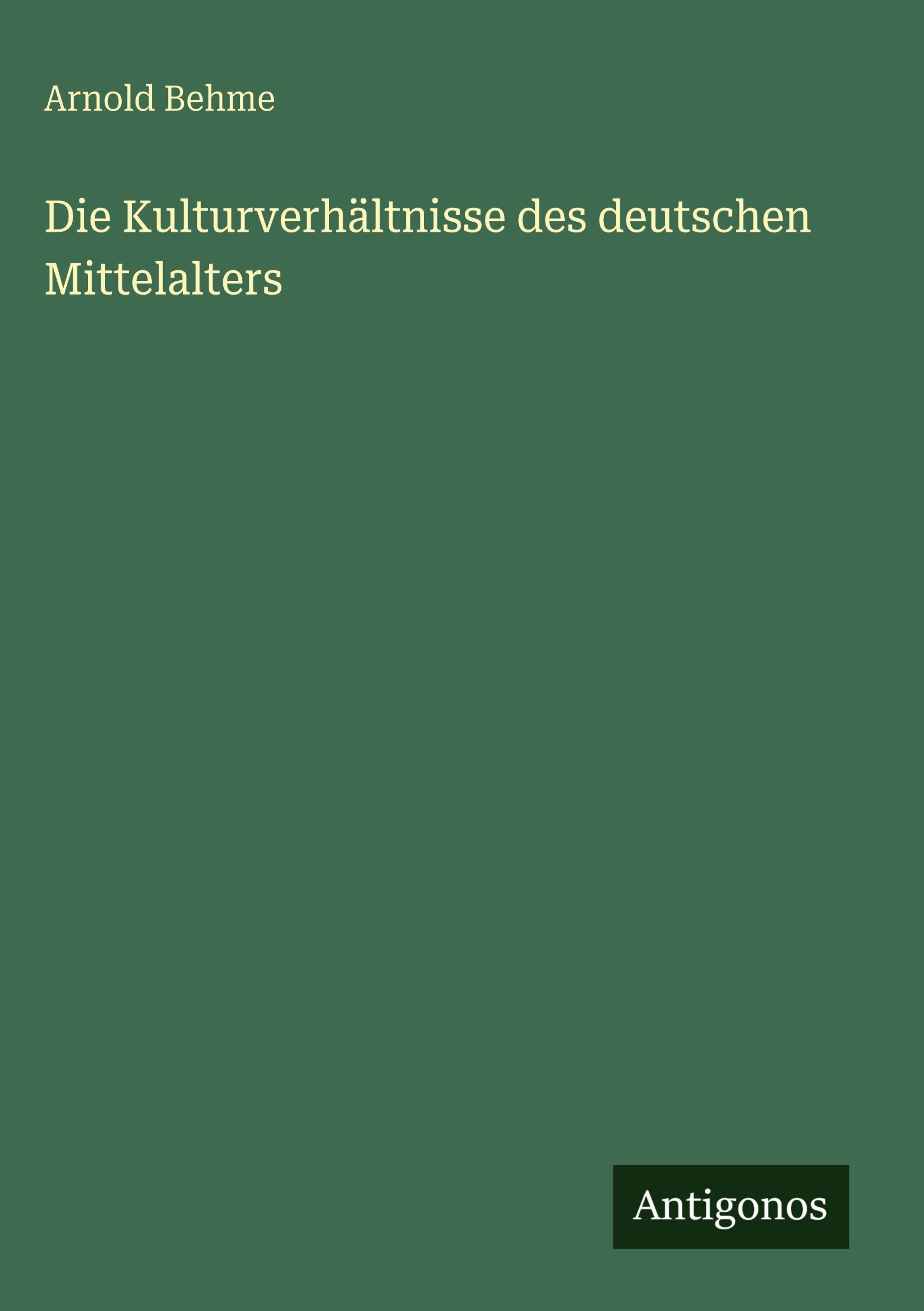 Arnold Behme: Die Kulturverhältnisse des deutschen Mittelalters, Gebunden