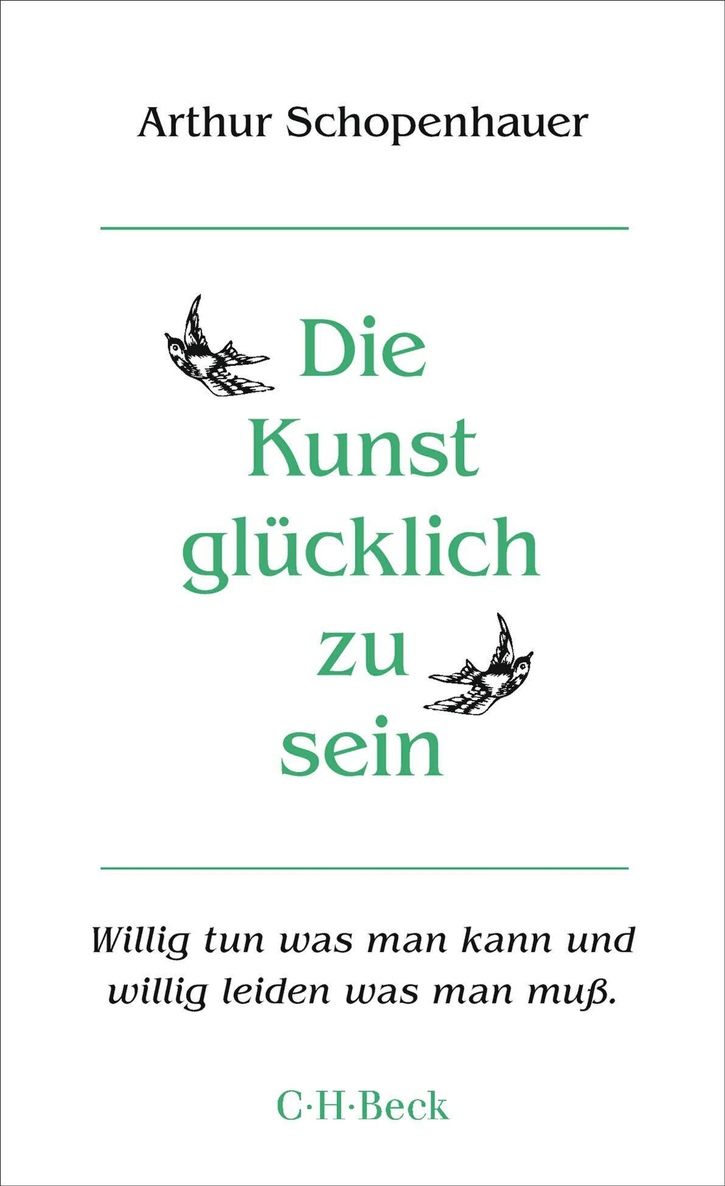 "Arthur Schopenhauer. Die Kunst glücklich zu sein. Willig tun was man kann und willig leiden was man muß. C.H. Beck." Illustration von zwei Vögeln., Buch
