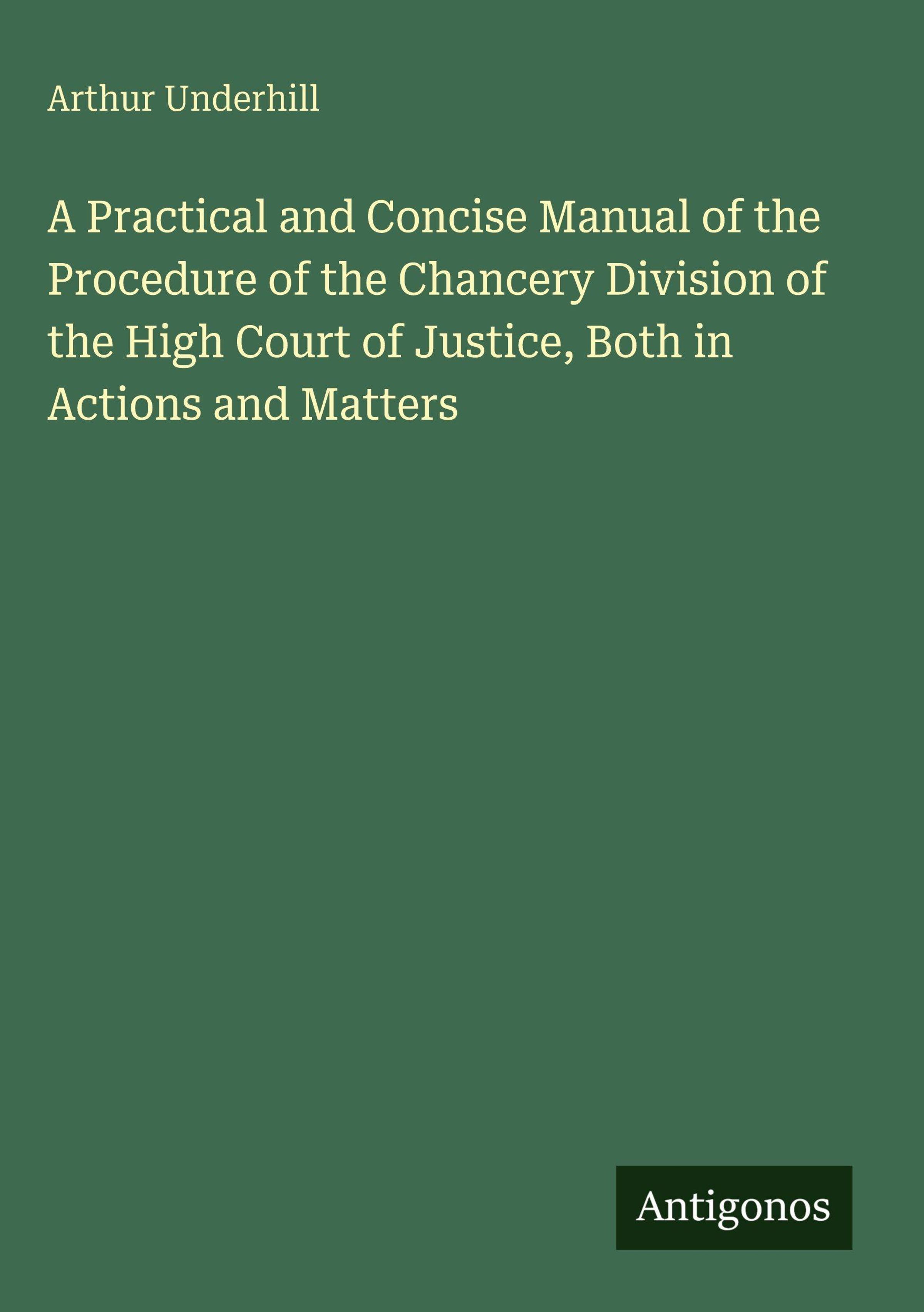 Arthur Underhill: A Practical and Concise Manual of the Procedure of the Chancery Division of the High Court of..., Gebunden
