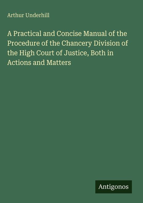 Der Artikel Arthur Underhill: A Practical and Concise Manual of the Procedure of the Chancery Division of the High Court of Justice, Both in Actions and Matters wurde in den Warenkorb gelegt.