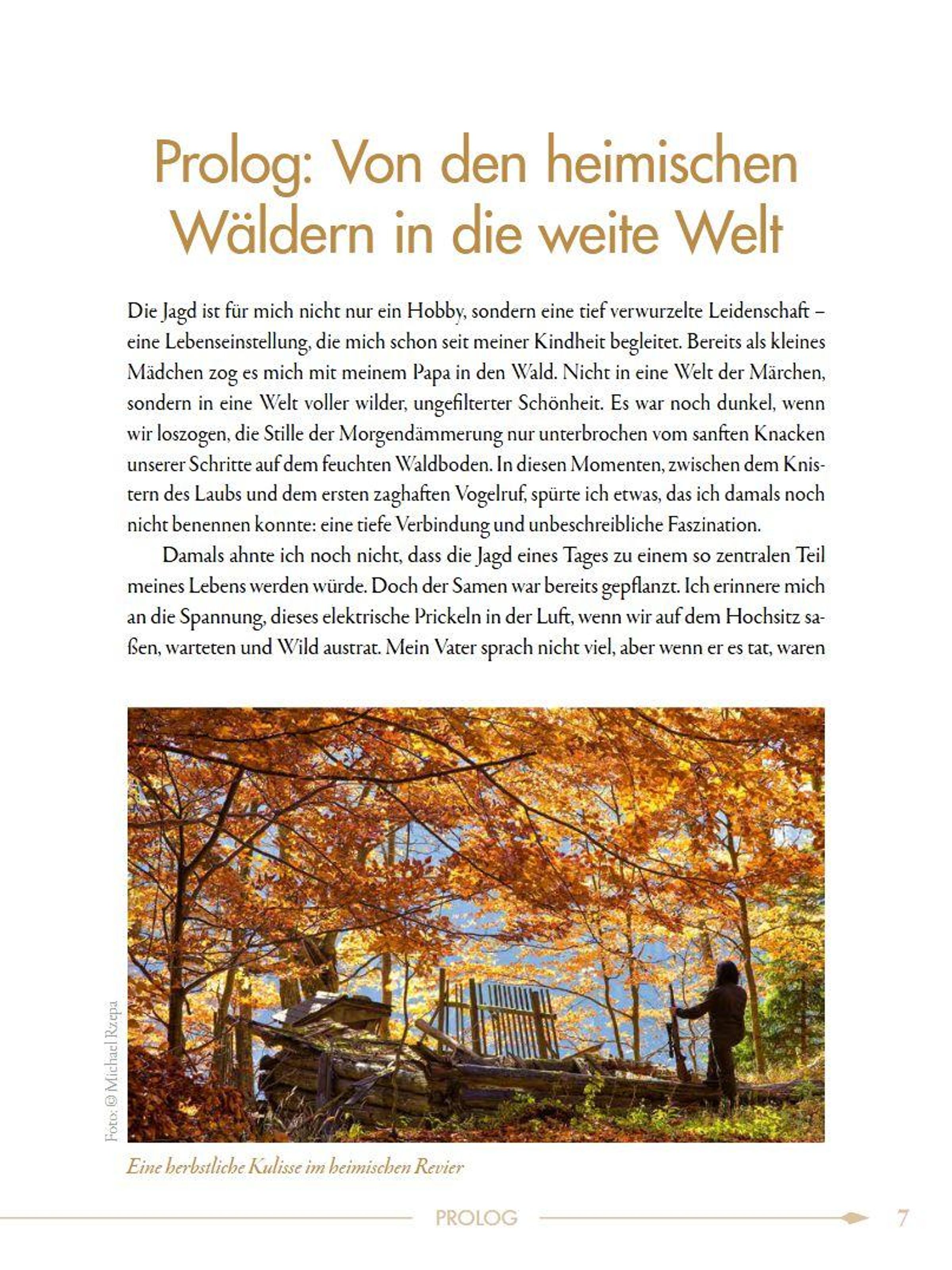 Eine leidenschaftliche Jägerin hat ihr Hobby zum Beruf gemacht: Als Eigentümerin einer Firma, die exklusive Jagdreisen organisiert, begleitet sie ihre Kunden als Jagdleiterin. In ihrem Buch erzählt sie von ihrem Faible für die Jagd von Kindheit an. Sie ist Mitpächterin in ihrem Heimatrevier in Niederösterreich, liebt aber auch die Jagd in den Bergen. Hauptsächlich schildert sie jedoch die Meilensteine ihrer persönlichen jagdlichen Auslandserfahrung, wie eine Steinbockjagd in Kirgisistan, Jagden auf Schwarzbären in Idaho und Montana oder eine spanische "Montería" (eine groß angelegte Treibjagd auf iberisches Rotwild, Schwarz-, Muffel- und Damwild) und viele weitere beeindruckende Erlebnisse. Zusätzlich gibt es interessante Tipps und wissenswerte Informationen über die Jagd im Ausland. Thematisiert werden auch ethische Fragen zur Auslandsjagd und wie es um die Zukunft der Jagd im In- und Ausland steht.