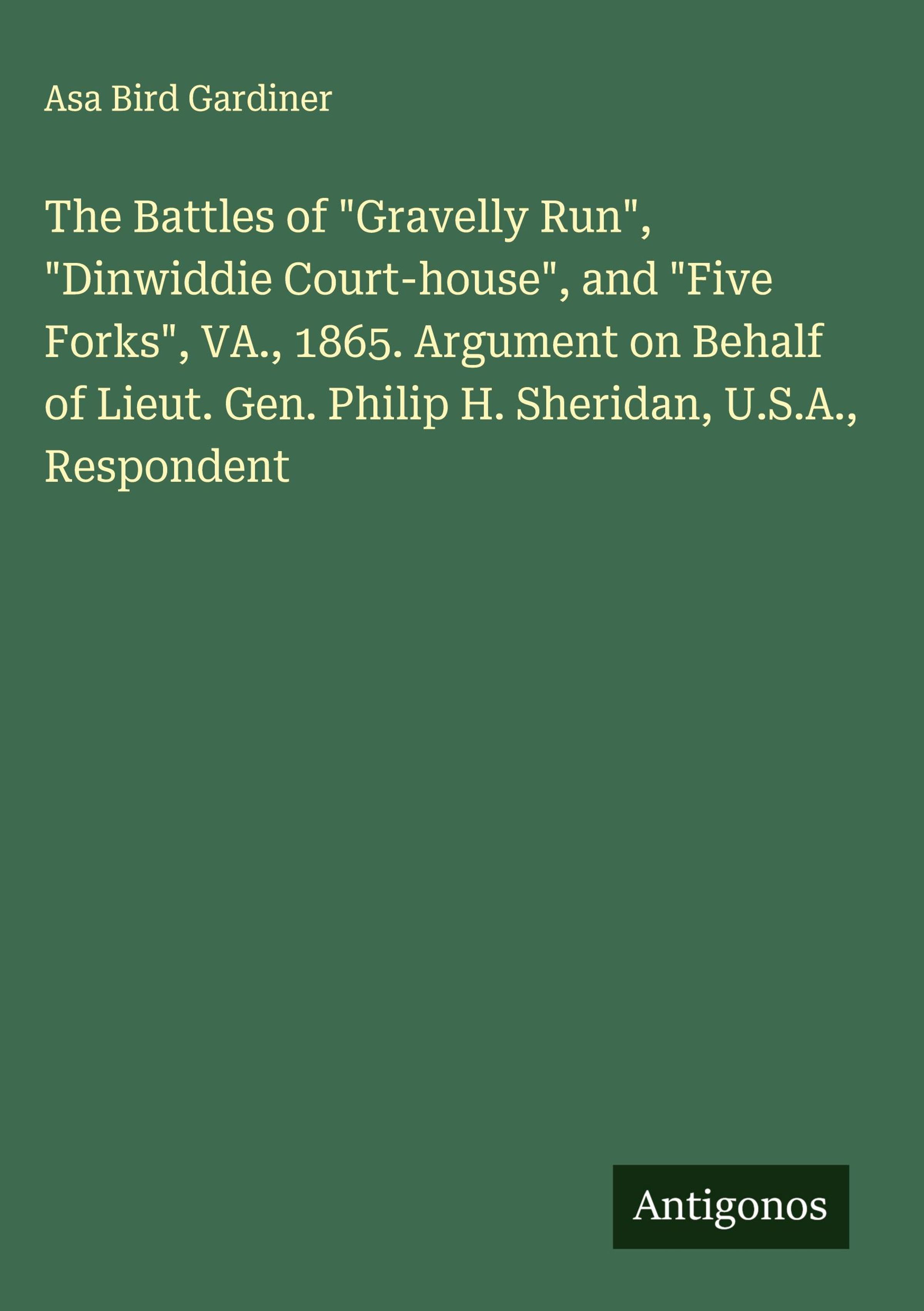 Asa Bird Gardiner: The Battles of "Gravelly Run", "Dinwiddie Court-house", and "Five Forks", VA., 1865. Argument..., Gebunden