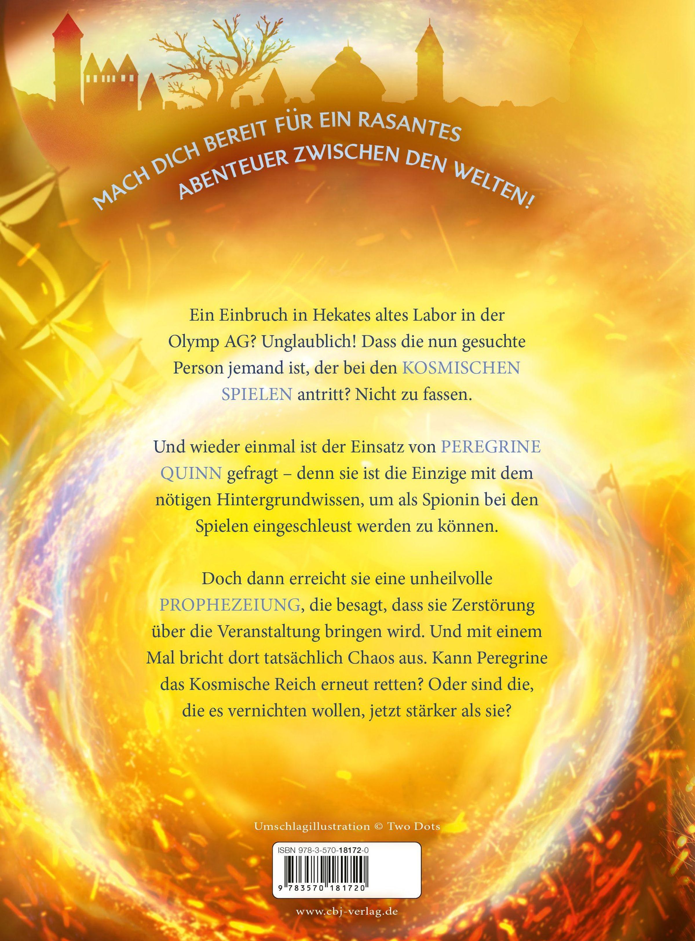 An ihrem 13. Geburtstag erreicht Peregrine Quinn ein Notruf aus dem kosmischen Reich. Befindet sich unter den Teilnehmenden der legendären Kosmischen Spiele ein Maulwurf, der mit Discordia zusammenarbeitet? Peregrine willigt ein, als Kandidatin anzutreten und sich unauffällig umzuschauen. Doch das Training ist härter als erwartet und auch sonst scheinen die Spiele unter keinem guten Stern zu stehen. Beeinflusst Discordia etwa immer noch das Geschehen? Peregrine setzt alles daran, die Wahrheit rechtzeitig ans Licht zu bringen ...