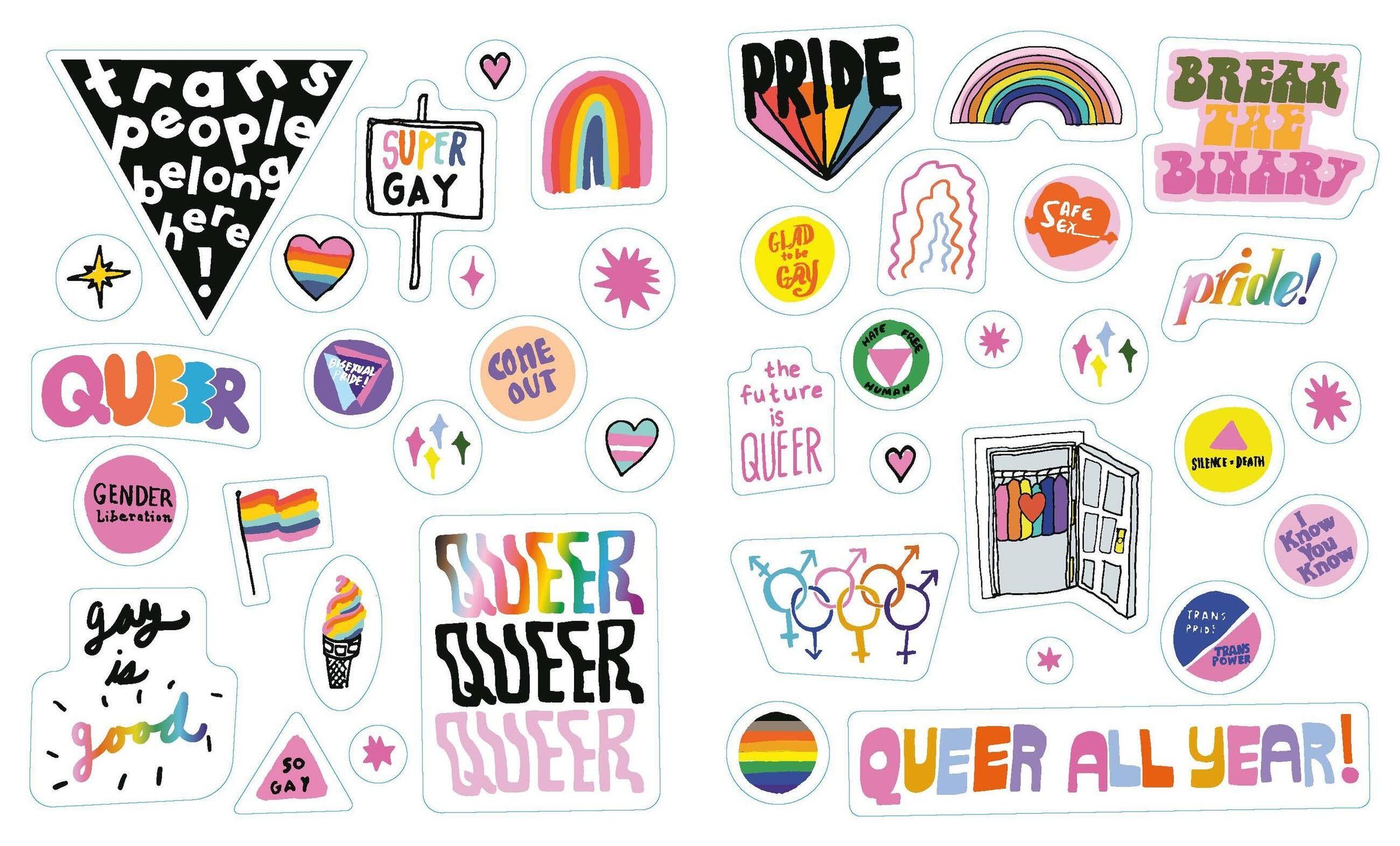 From flags and rainbows to queer slogans (Gay All Day, Queer All Year) and declarations (Protect Trans Kids), you'll find hundreds of ways to joyfully share LGBTQIA+ pride in The Big Book of Queer Stickers.