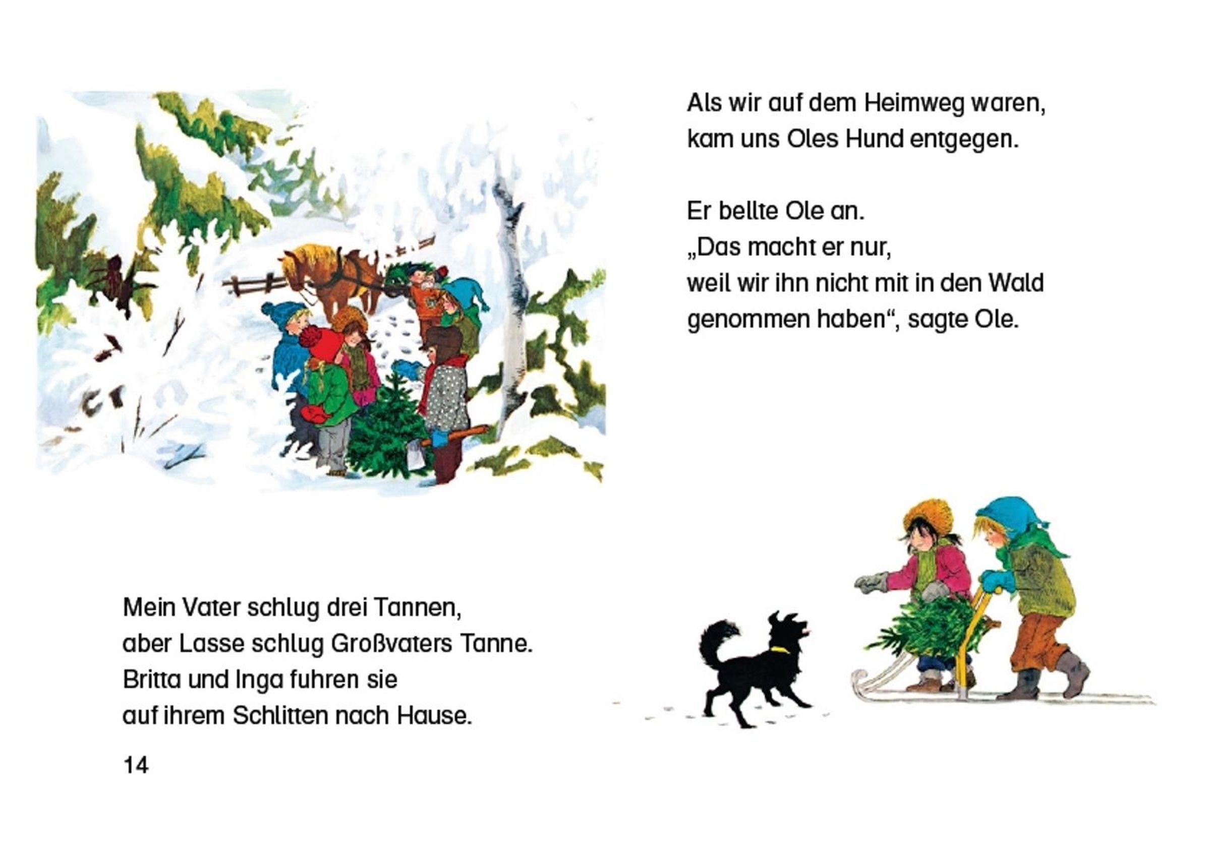 In "Weihnachten in Bullerbü" von Astrid Lindgren wird das Fest auf wunderbar traditionelle Weise gefeiert. Die Kinder Lasse, Bosse, Lisa, Britta, Inga, Ole und die kleine Kerstin aus dem kleinen Dorf Bullerbü erleben die Freuden der Weihnachtsvorbereitungen, vom Backen über das Schmücken des Tannenbaums bis hin zum Einpacken der Geschenke. Die kindliche Begeisterung und Vorfreude auf das Fest sind greifbar, während die detaillierten Schilderungen von Lindgren eine idyllische und behagliche Weihnachtsstimmung vermitteln. Die Geschichte, reich illustriert und leicht verständlich, macht sie zu einem idealen Leseerlebnis für Kinder und ihre Familien während der Adventszeit, und bringt die magische Weihnachtszeit näher.