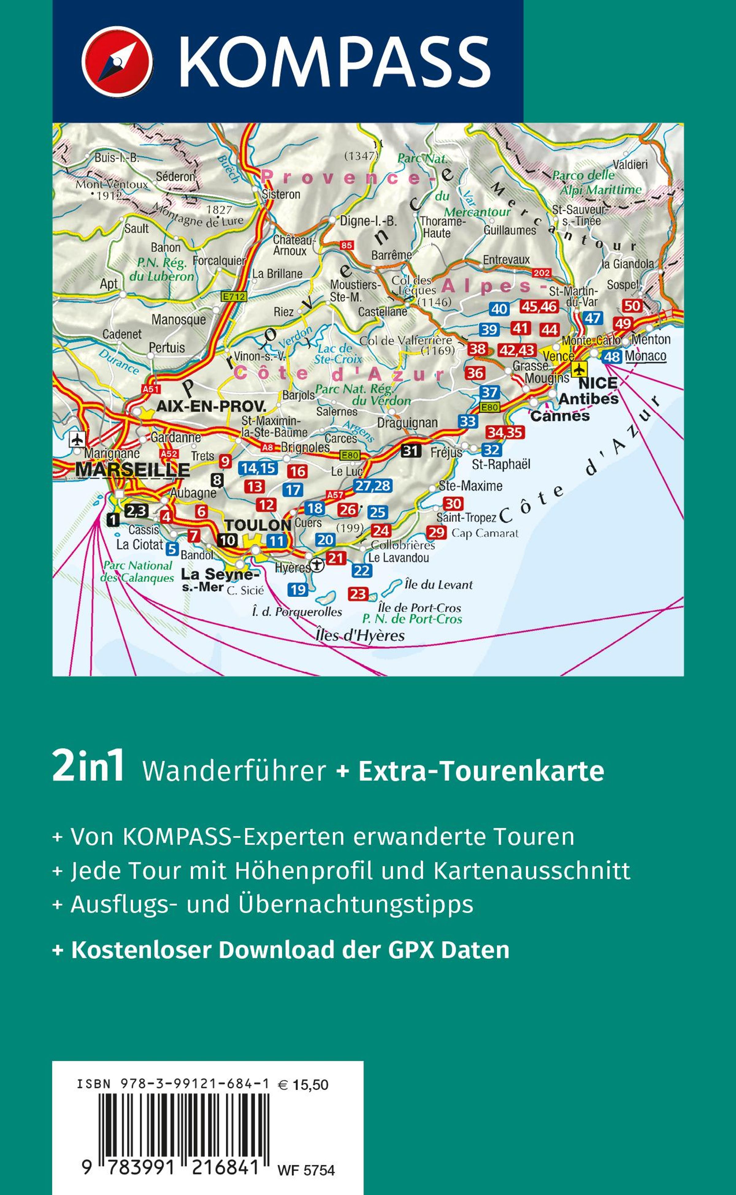 KOMPASS Wanderführer Côte d'Azur, Die schönsten Küsten- und Bergwanderungen, 50 Touren mit Extra-Tourenkarte