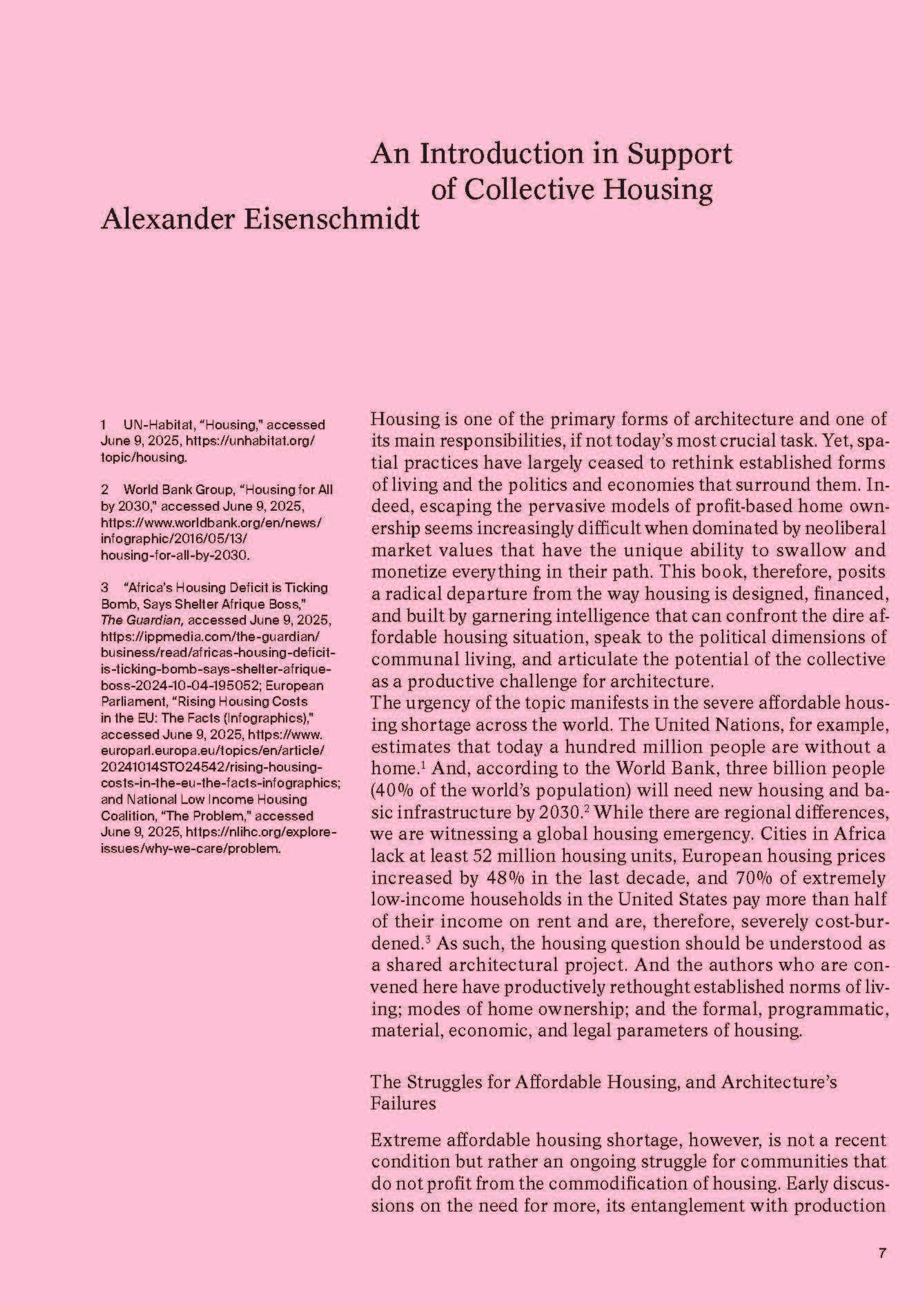 "At Home with the Collective" und "A Report from the Future of Housing" in schwarzem Text auf rosa Hintergrund. Mehrere Fotos., Buch