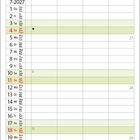 - Farblich hervorgehobene Sonn- und Feiertage, sowie Anzeige der Zeitumstellung