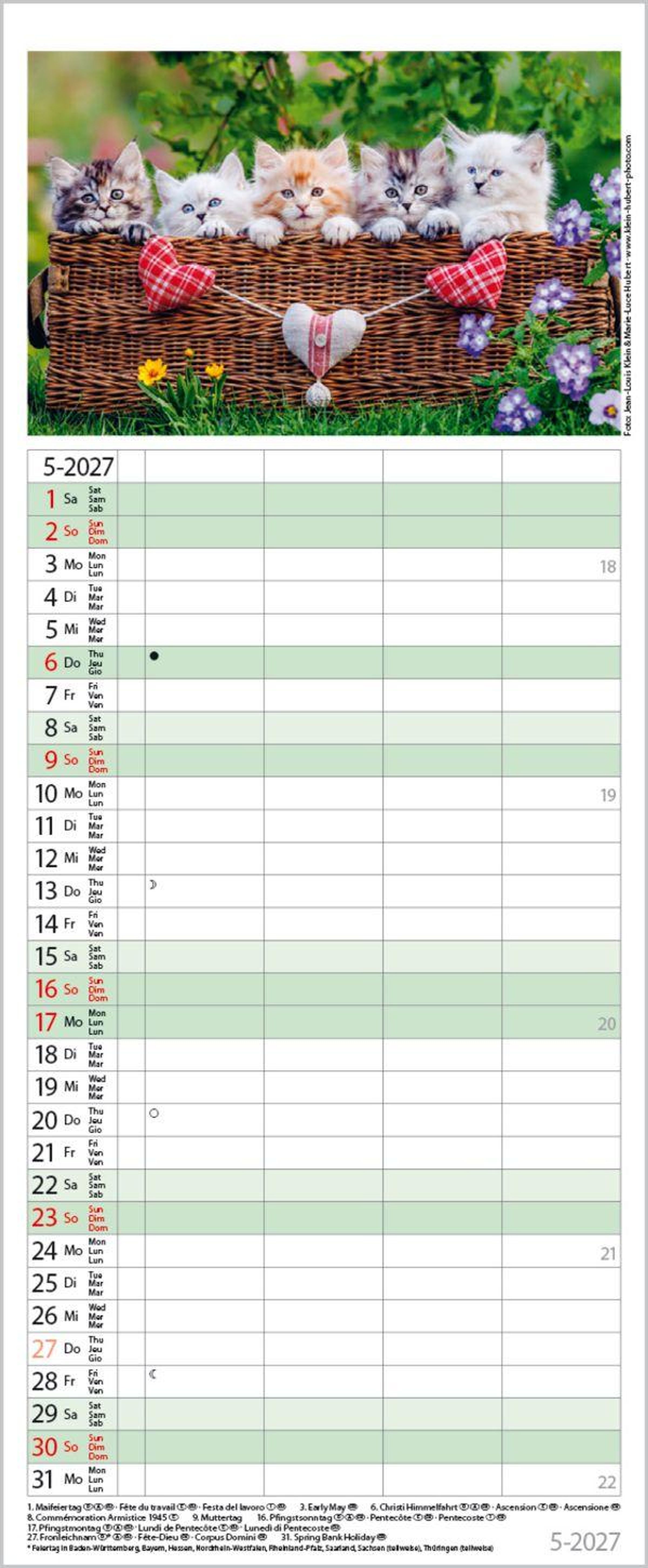 - Familienplaner mit 4 breiten Spalten. Hochwertiger Familienkalender mit Ferienterminen und Vorschau bis März 2027. 19 x 46 cm.
