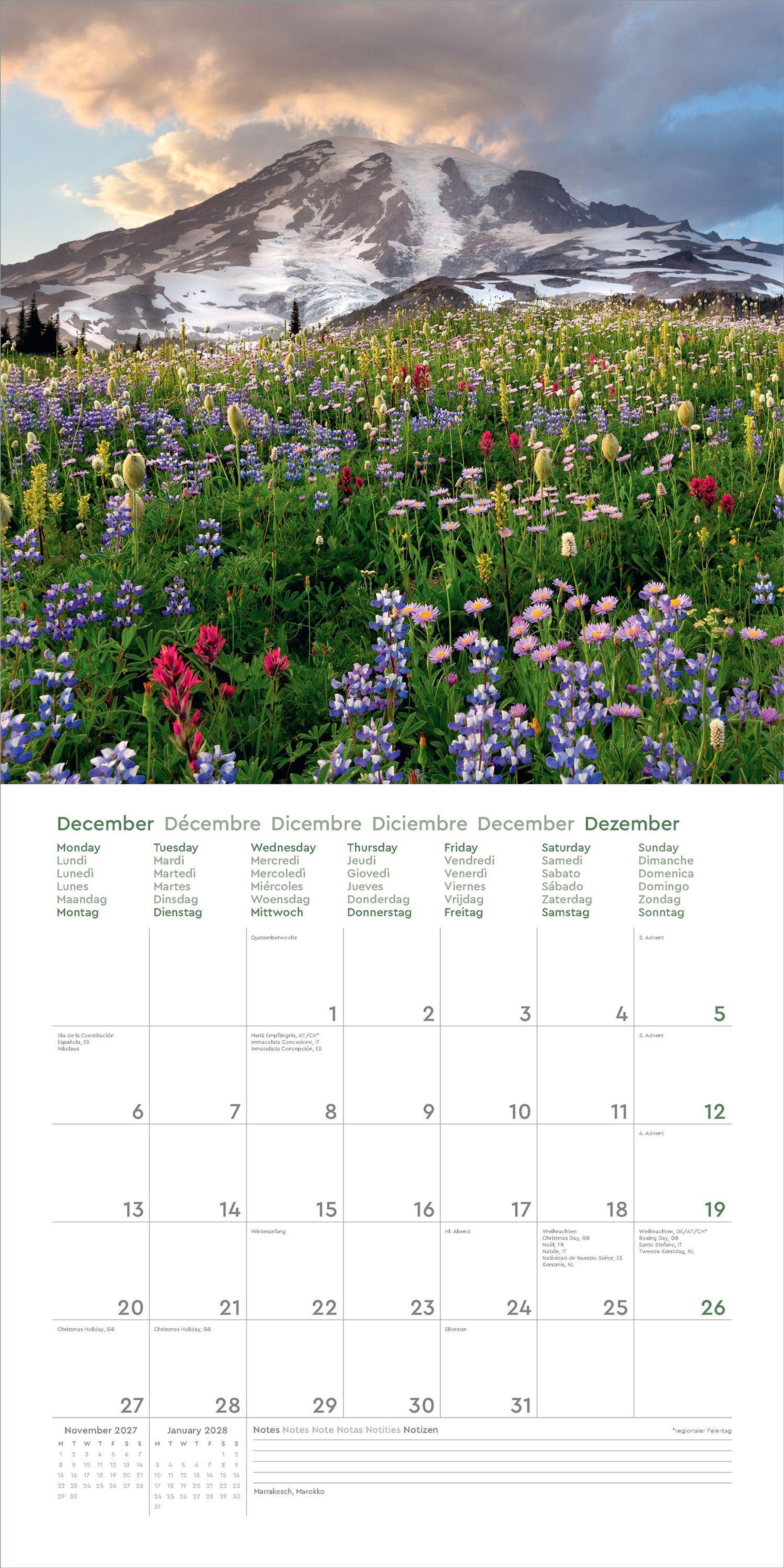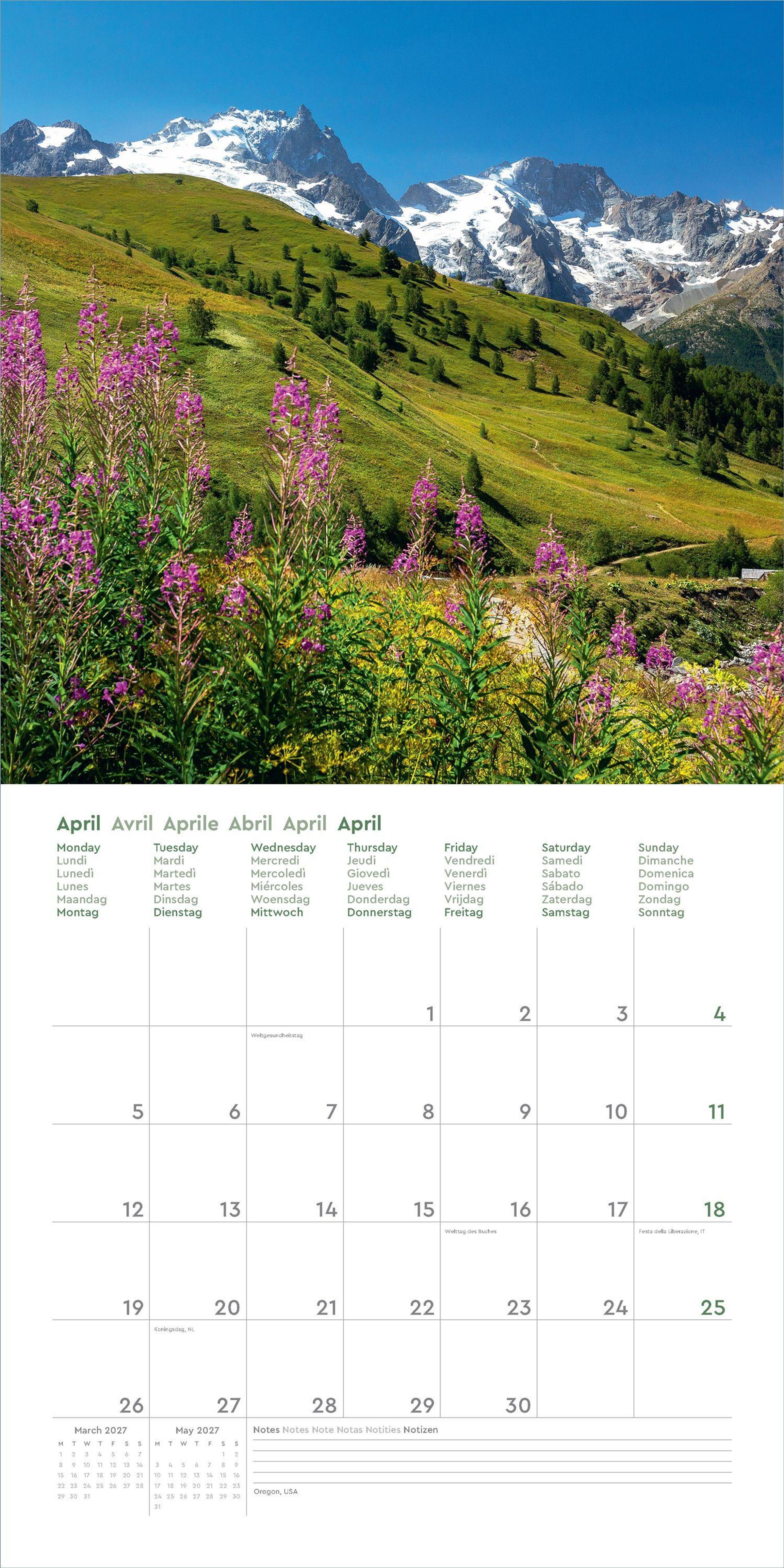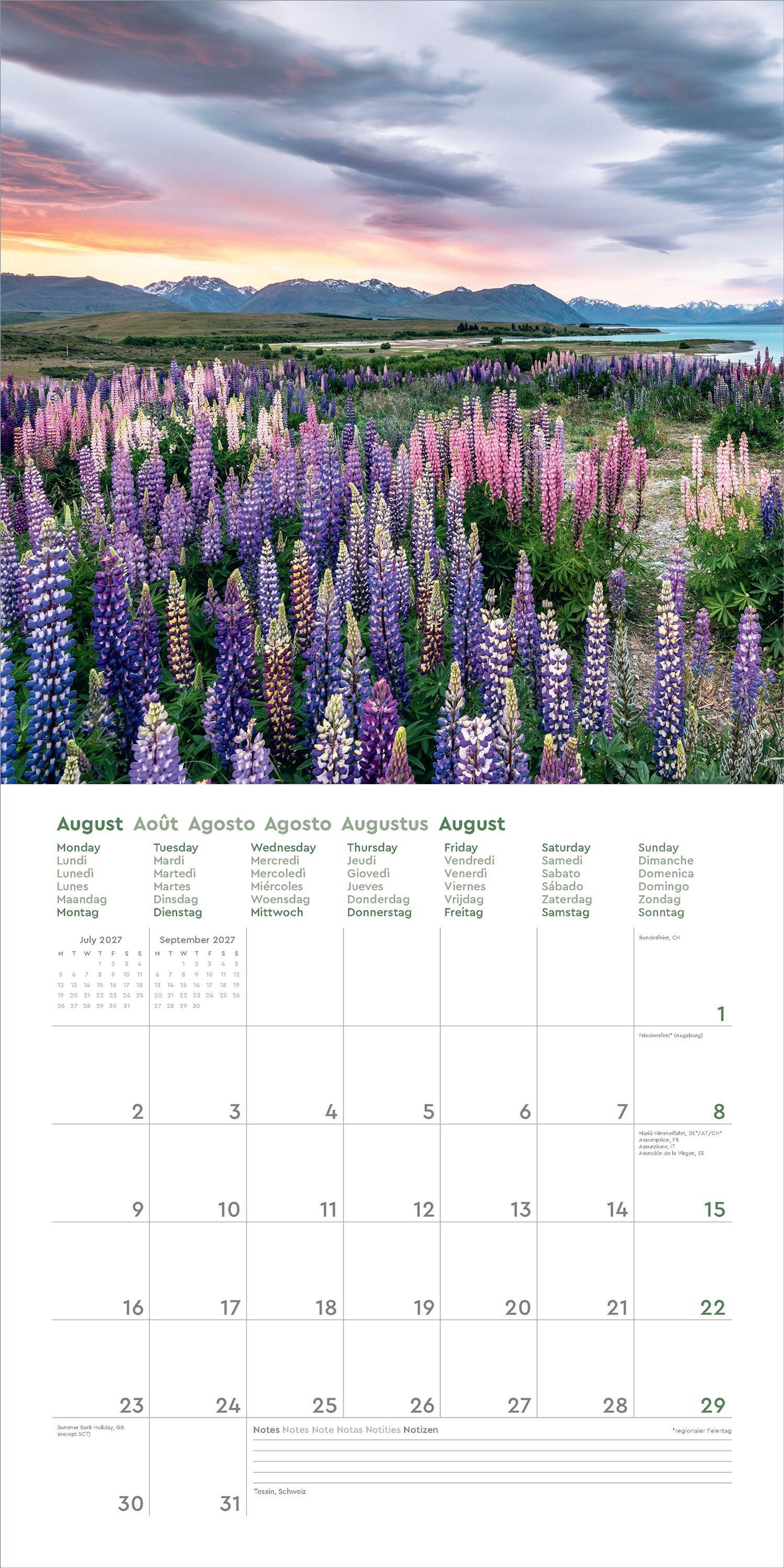 Dieser KUNTH Wandkalender "Aufgeblüht" 2027 begleitet mit zwölf traumhaften Aufnahmen durch das ganze Jahr. Von Rot bis Rosa, von Gelb bis Violett - die aufblühende Natur zeigt sich gern in den prächtigsten Farben. Der Kalender schwelgt in dieser bunten Vielfalt blühender Landschaften in den Bergen, an Küsten, in den Städten oder auf dem Land rund um die Welt.