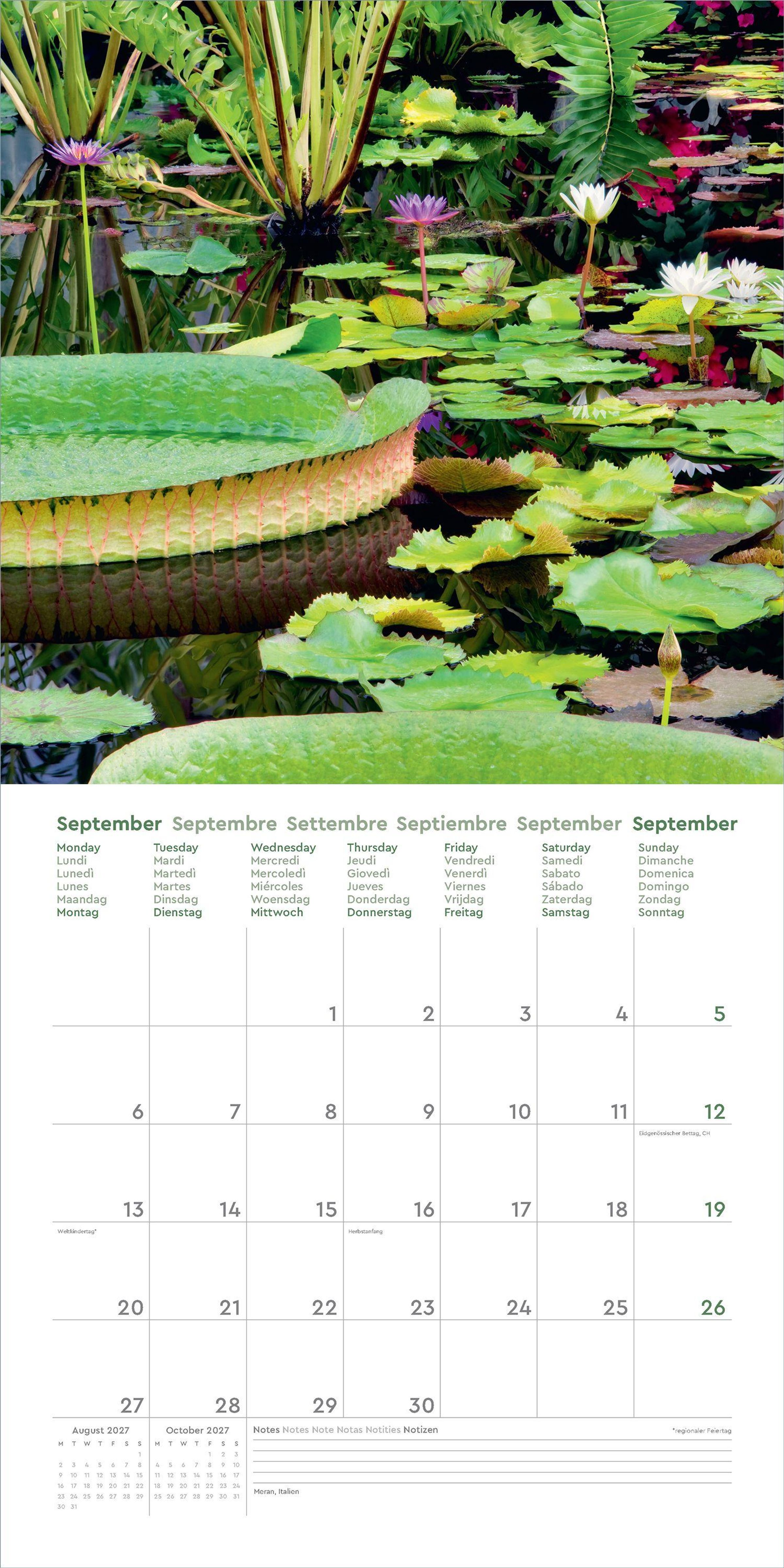 - Farbenprächtiger Wandkalender mit Monatskalendarium für Notizen