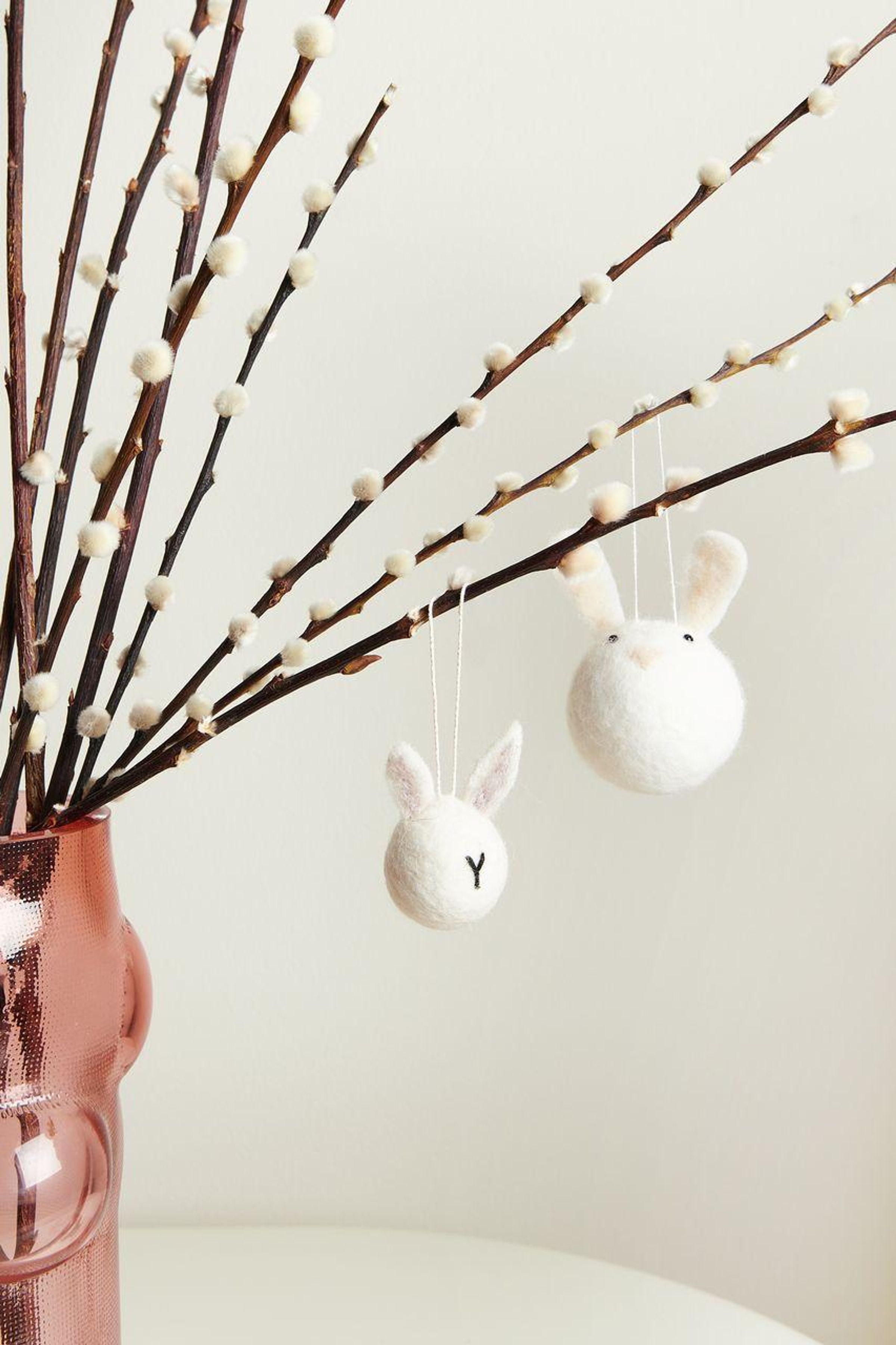 Der handgefilzte Hasenkopf aus einer weichen Filzmischung zeigt sich in zarter Farbgebung und liebevoller Gestaltung. Er eignet sich ideal zum Aufhängen an Zweigen, Kränzen oder Fensterdekorationen und bringt eine frühlingshafte Note in jeden Raum.