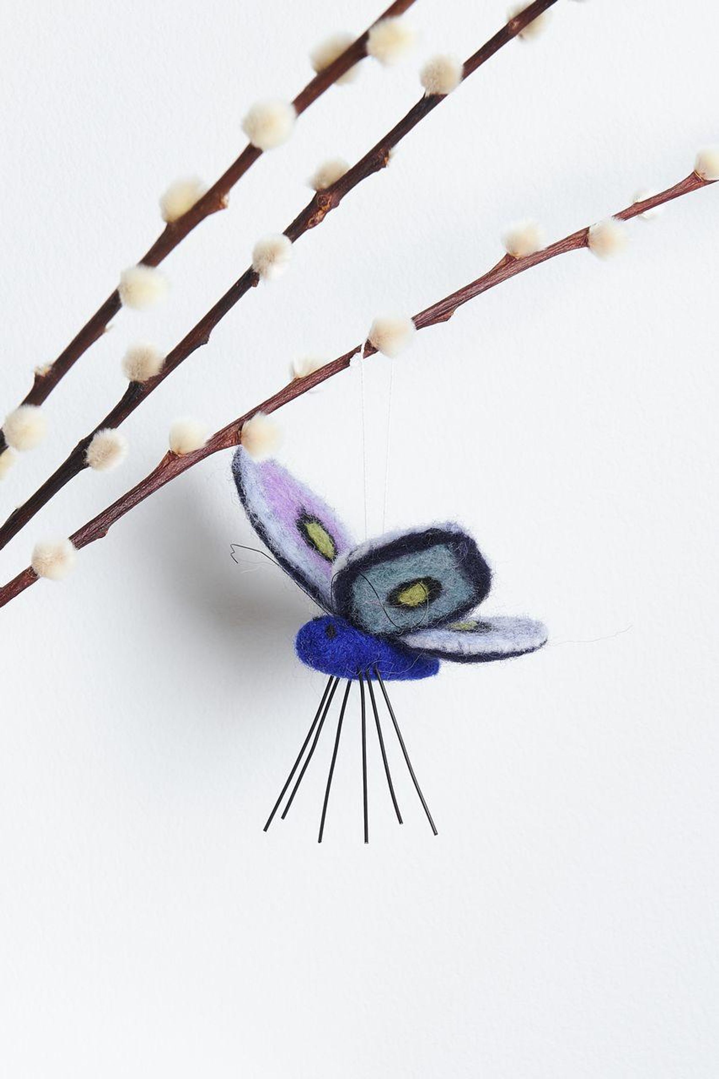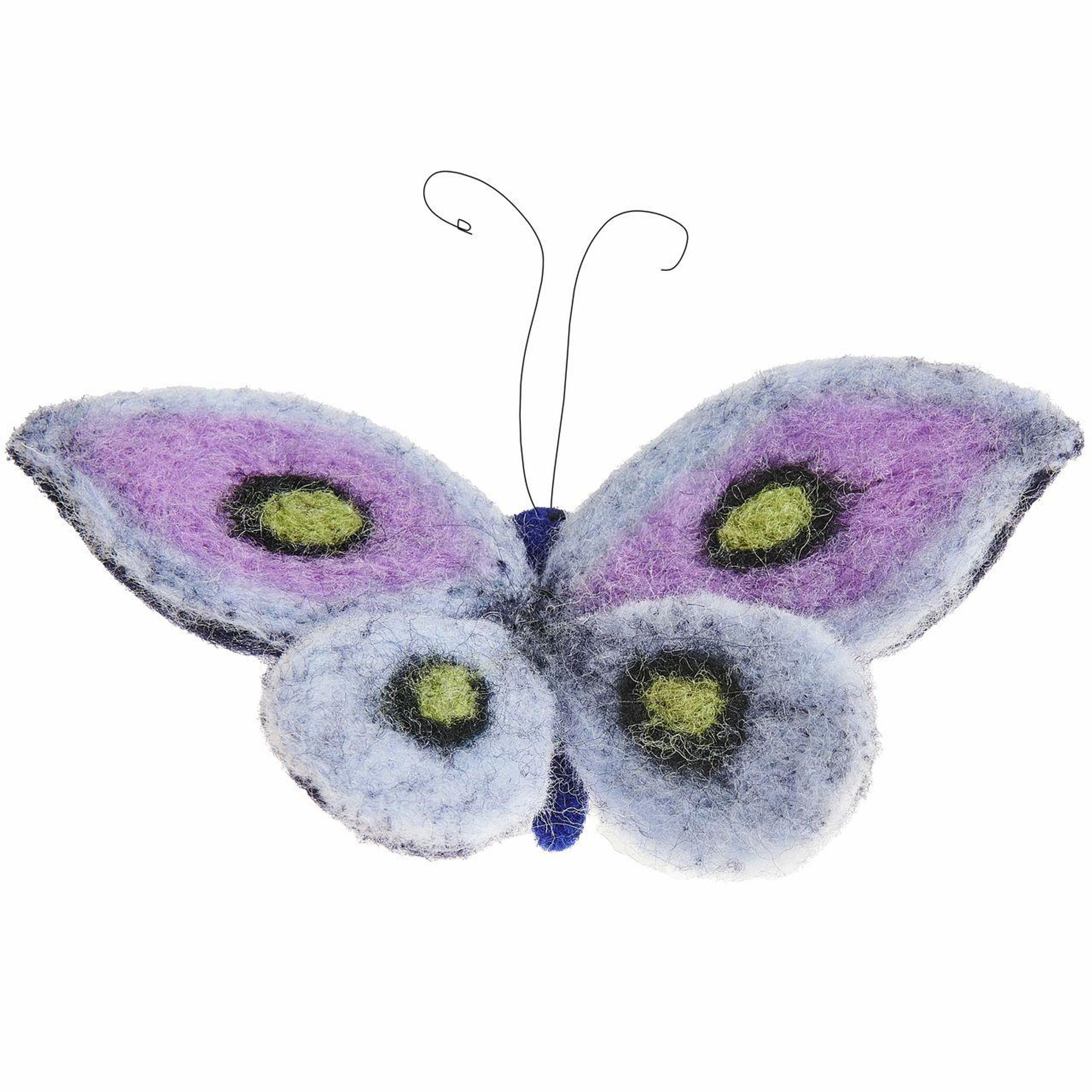 Der handgefilzte Filz-Aufhänger in Schmetterlingsform besticht durch seine weiche Struktur und die hochwertige Verarbeitung aus reiner Wolle. Das detailreiche Design verleiht jeder Frühlingsdekoration einen natürlichen und verspielten Akzent. Durch das Filzmaterial bleibt der Schmetterling stabil in seiner Form und eignet sich ideal zum Aufhängen.