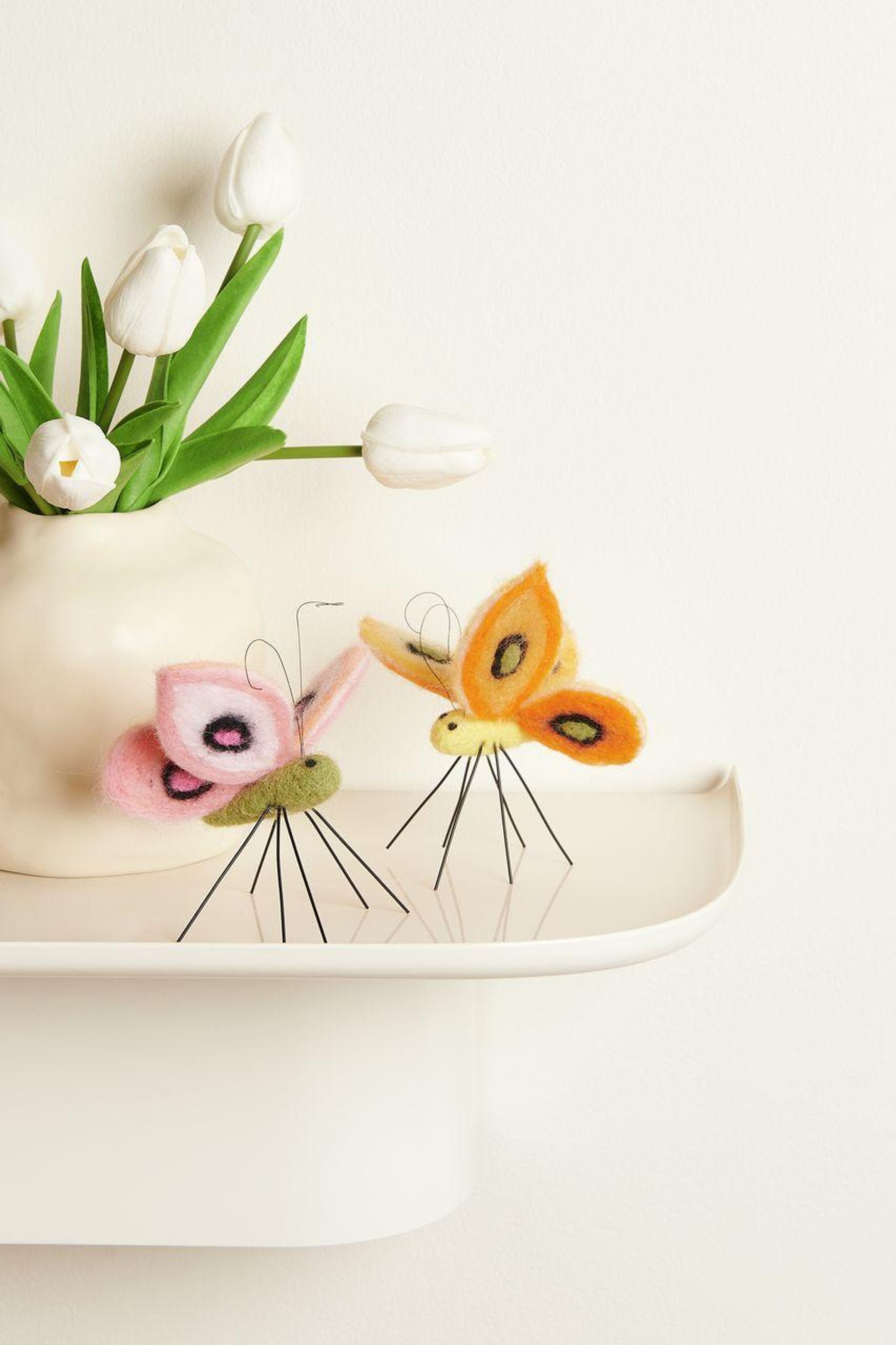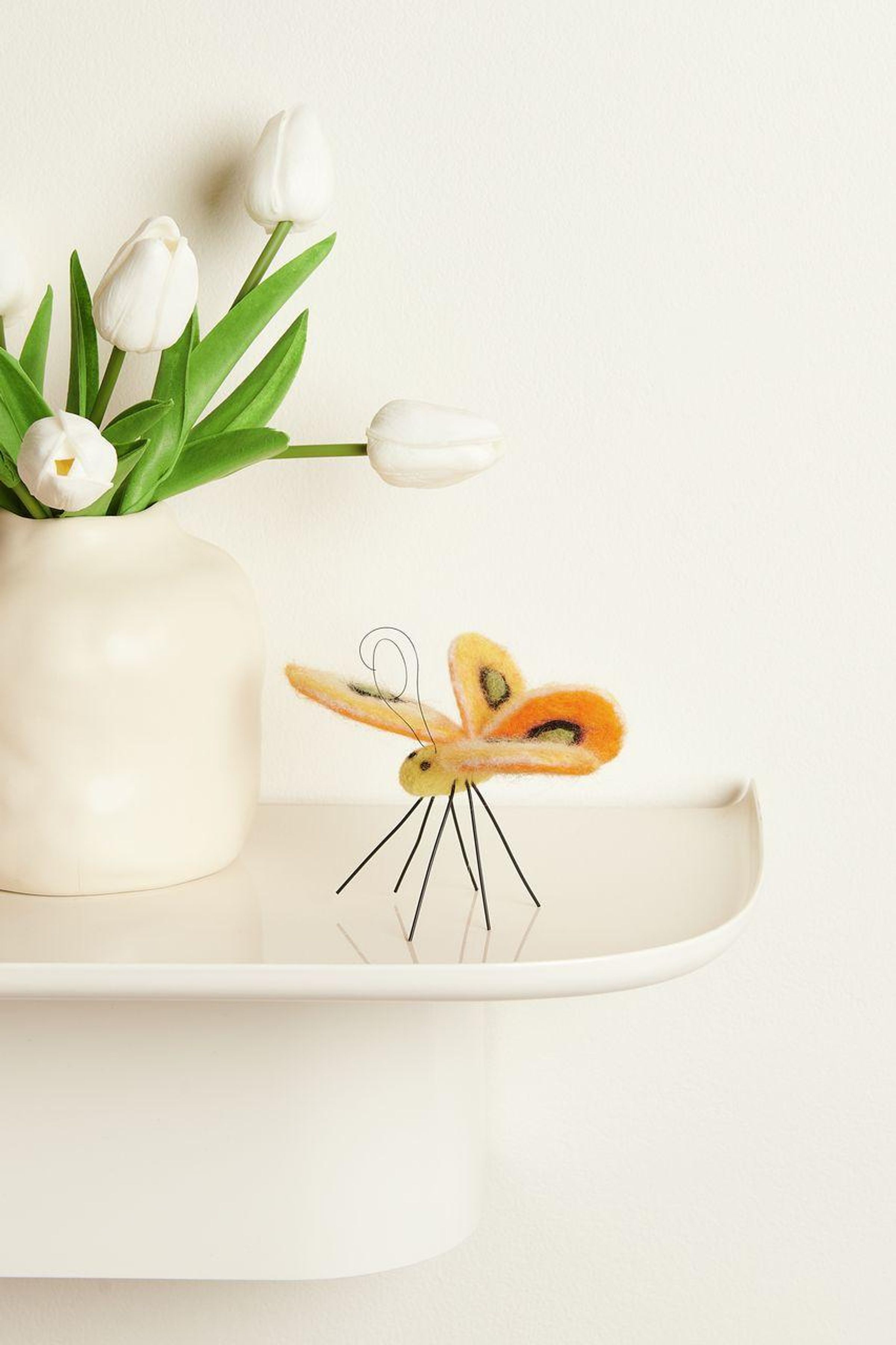 Der handgefilzte Filz-Aufhänger in Schmetterlingsform besticht durch seine weiche Struktur und die hochwertige Verarbeitung aus reiner Wolle. Das detailreiche Design verleiht jeder Frühlingsdekoration einen natürlichen und verspielten Akzent. Durch das Filzmaterial bleibt der Schmetterling stabil in seiner Form und eignet sich ideal zum Aufhängen.