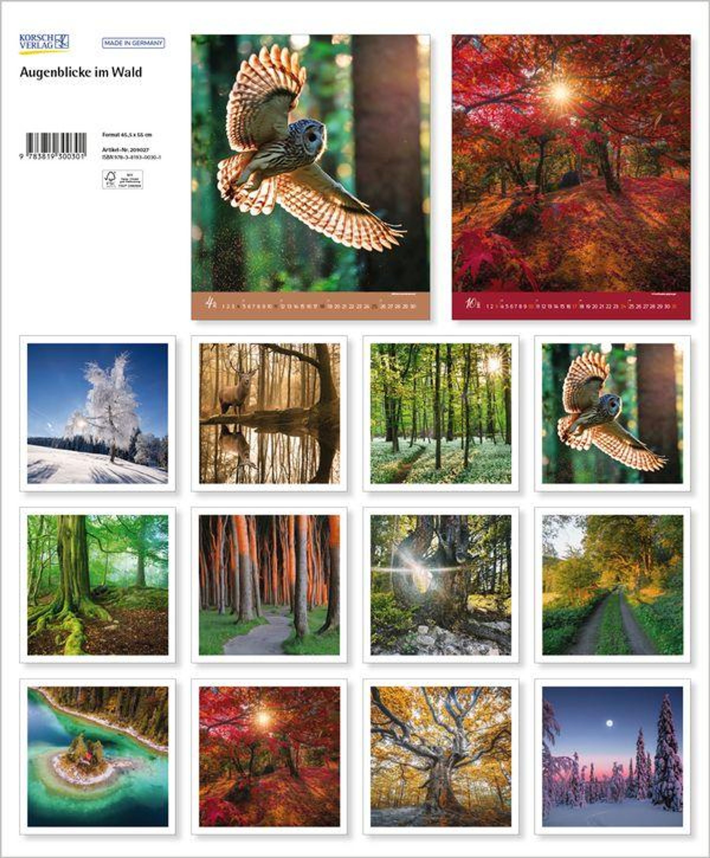 - Wandkalender groß. Fotokunst-Kalender mit einzigartigen Bildern aus Wäldern. Großformat: 55 x 45,5 cm.
