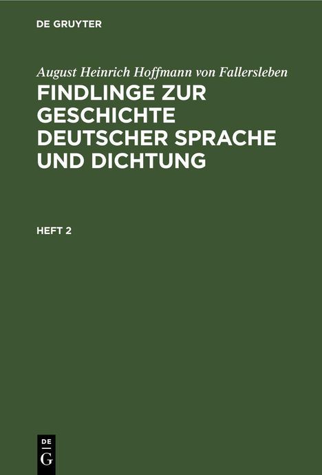 August Heinrich Hoffmann von Fallersleben: Findlinge zur Geschichte deutscher Sprache und Dichtung. Heft 2