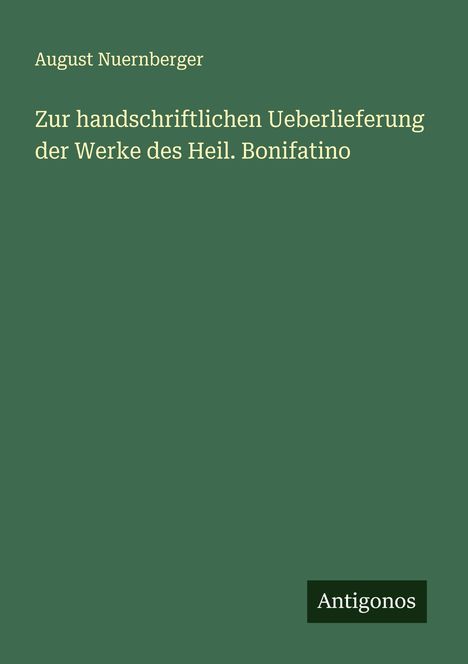 August Nuernberger: Zur handschriftlichen Ueberlieferung der Werke des Heil. Bonifatino, Kartoniert / Broschiert