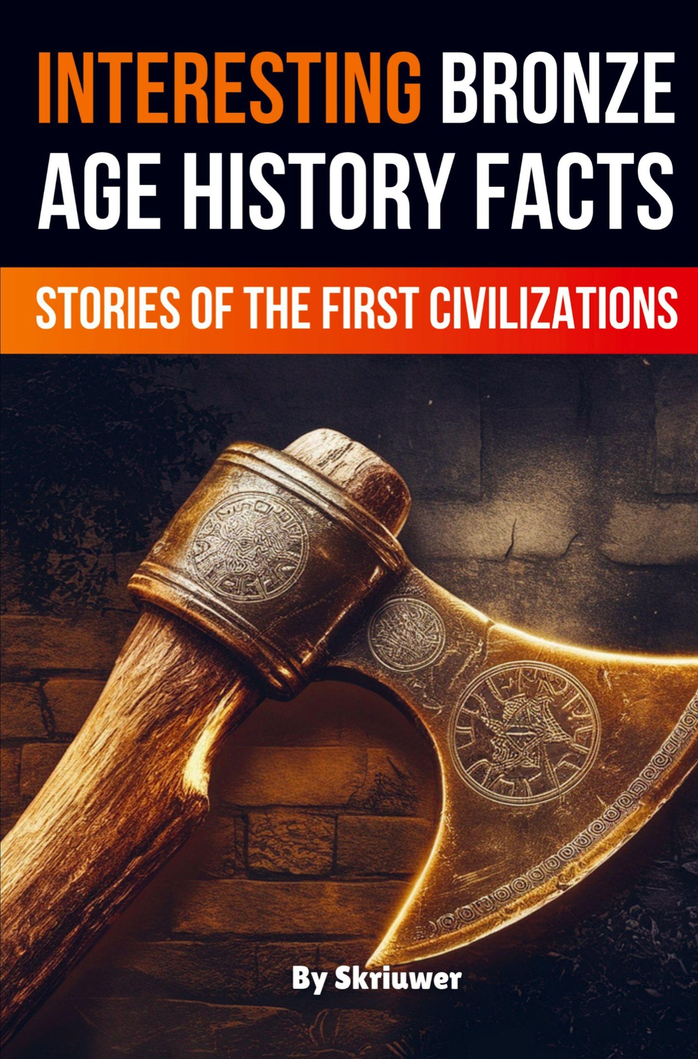 „Interesting Bronze Age History Facts“ in großen Lettern. Darunter eine kunstvoll verzierte Bronzeaxt., Buch