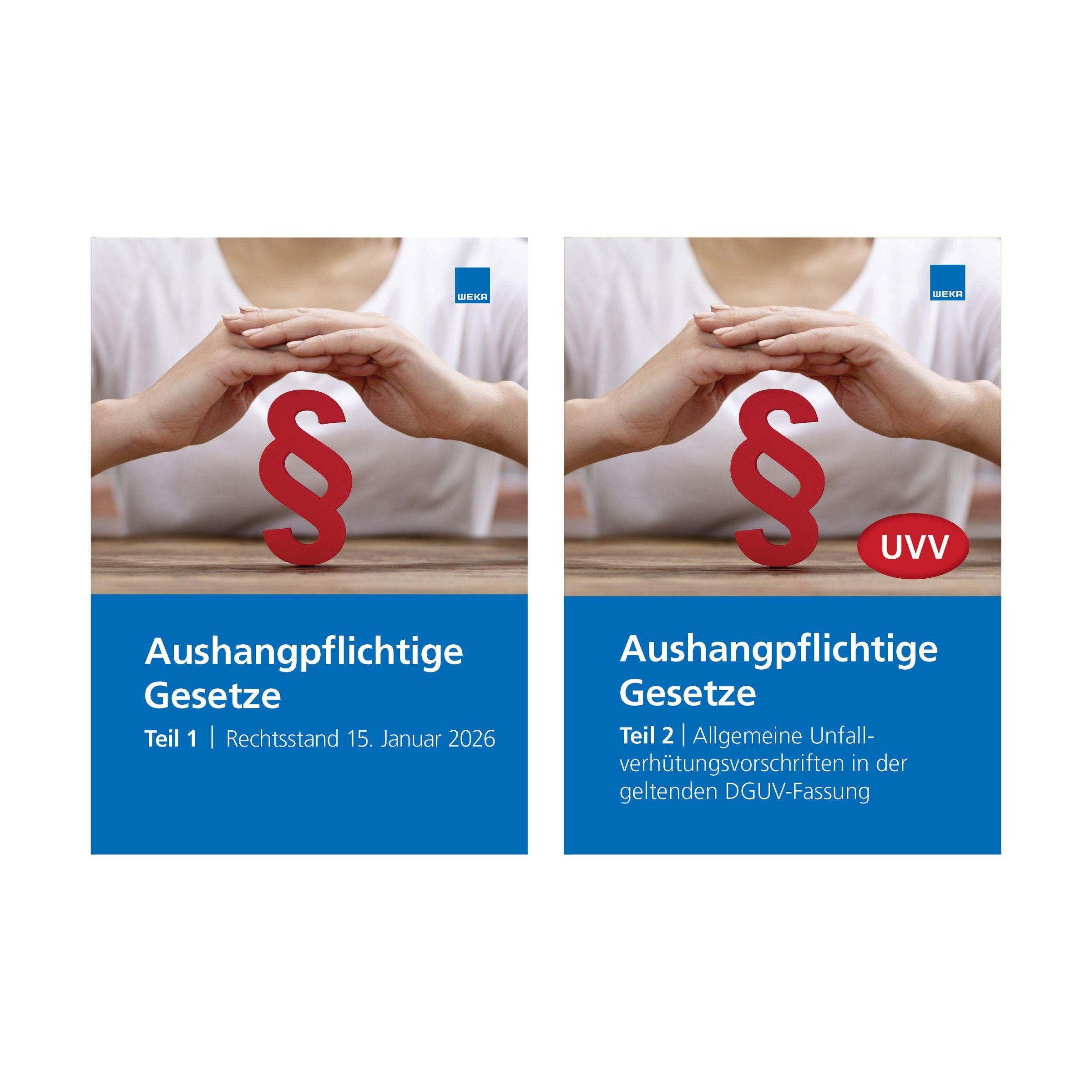 Machen Sie sich das Leben leichter mit unserem praktischen Doppelband, der sowohl die aushangpflichtigen Gesetze als auch die allgemeinen Unfallverhütungsvorschriften enthält. So kommen Sie Ihrer Pflicht im Handumdrehen nach.