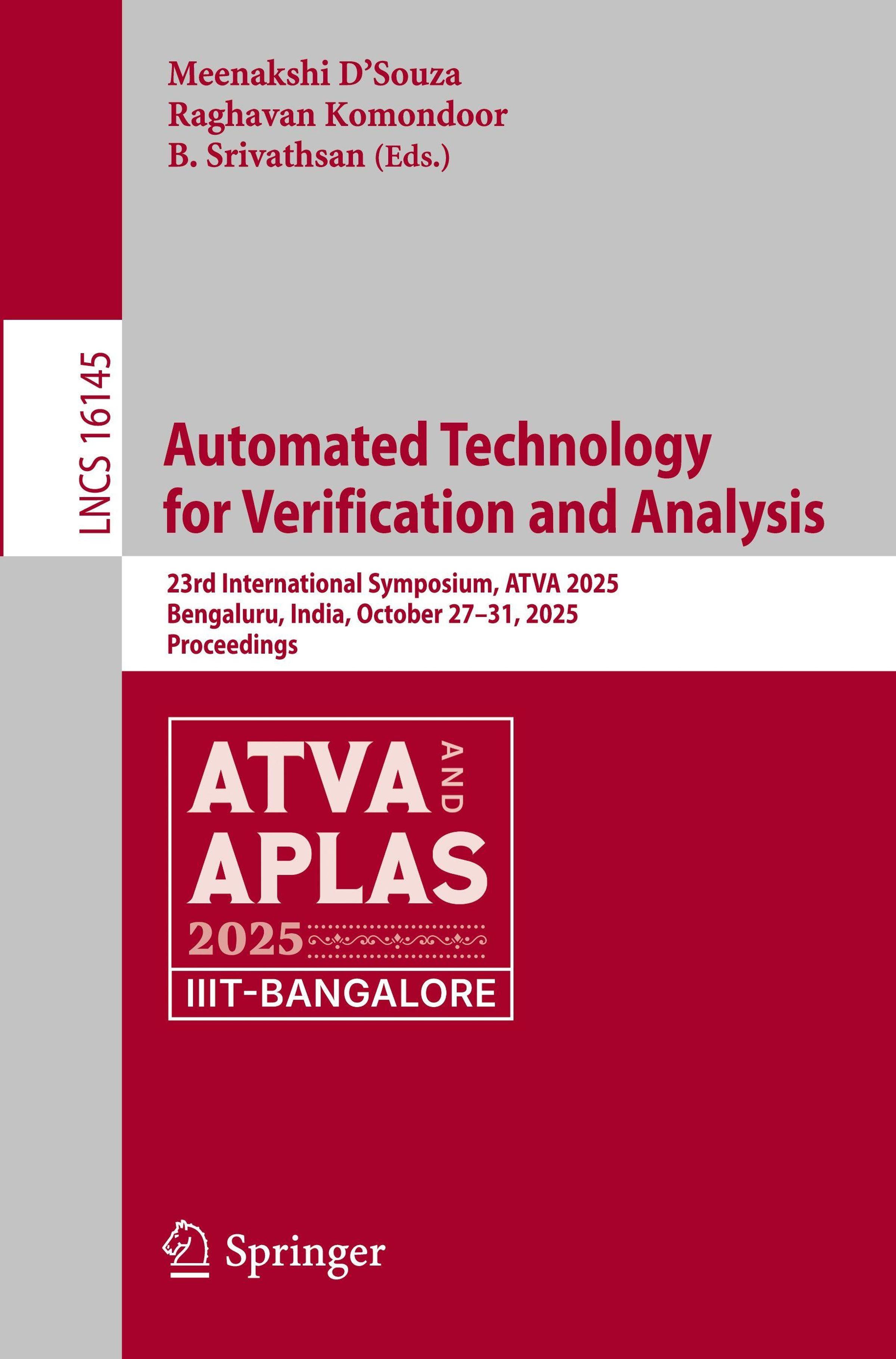 "Automated Technology for Verification and Analysis", ATVA 2025, 23.–31. Okt., Bengaluru, Indien. Springer-Logo unten., Buch