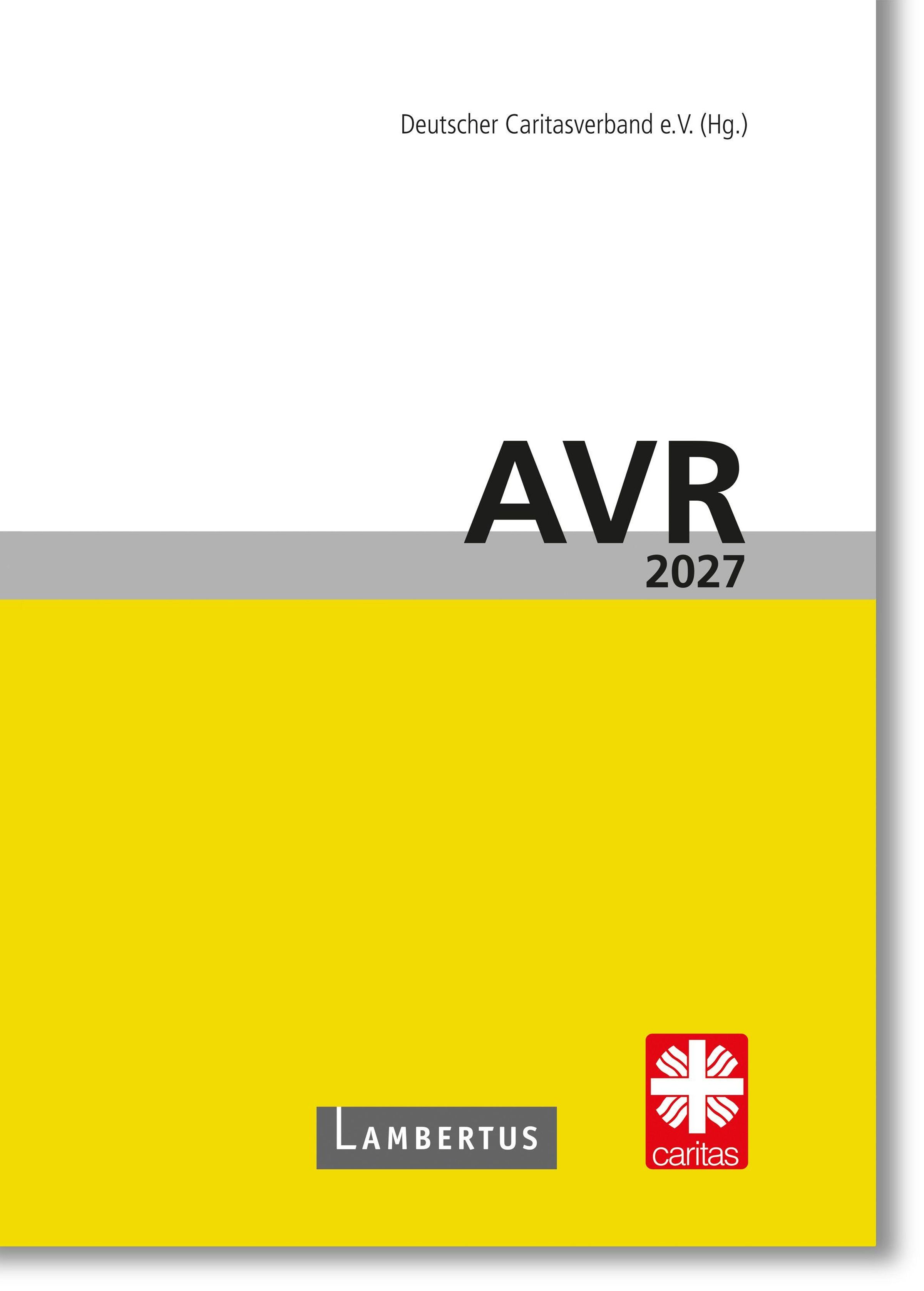 "AVR 2027" groß auf gelbem Hintergrund. Oben "Deutscher Caritasverband e.V. (Hg.)". Unten Logos "Lambertus" und "caritas"., Buch