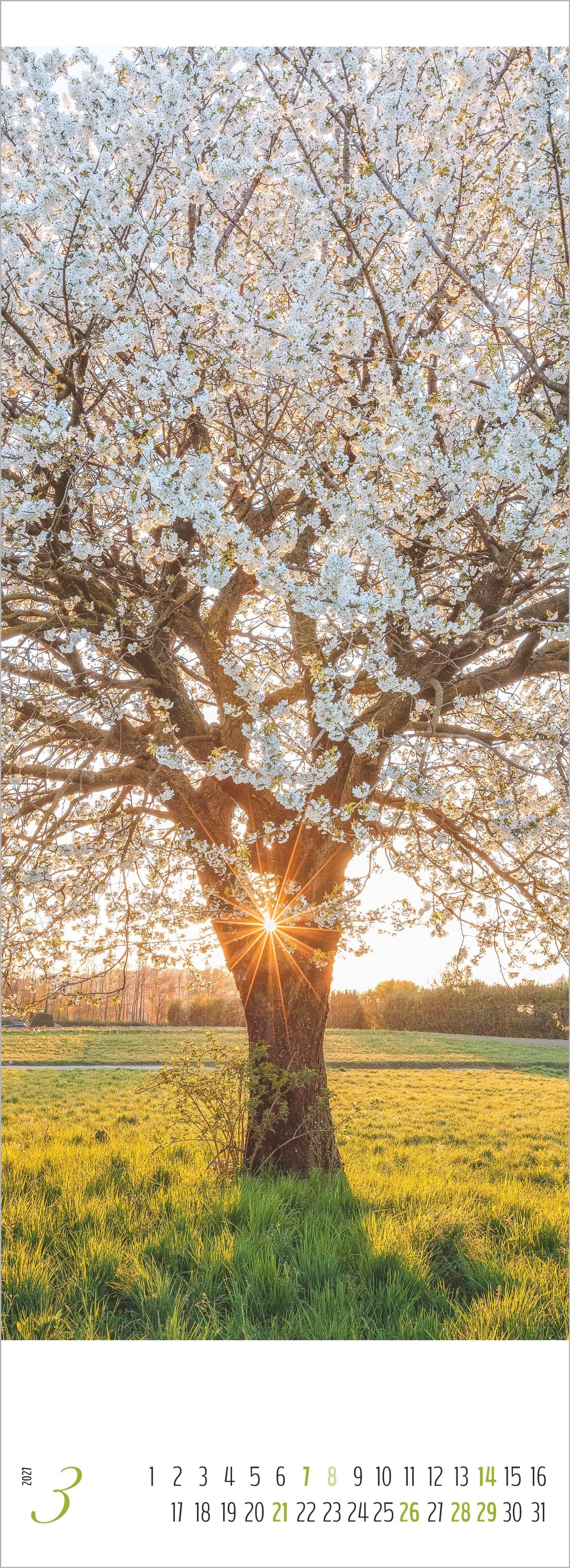 Im großzügigen Hochformat 25 x 69 cm entfalten die Motive ihre ganze Wirkung und bringen die eindrucksvollen Baumgestalten optimal zur Geltung. Das dezente, sprachneutrale Kalendarium fügt sich harmonisch unter die Aufnahmen ein, bietet Platz für Notizen und macht den Kalender zu einem funktionalen wie dekorativen Begleiter durch das Jahr.