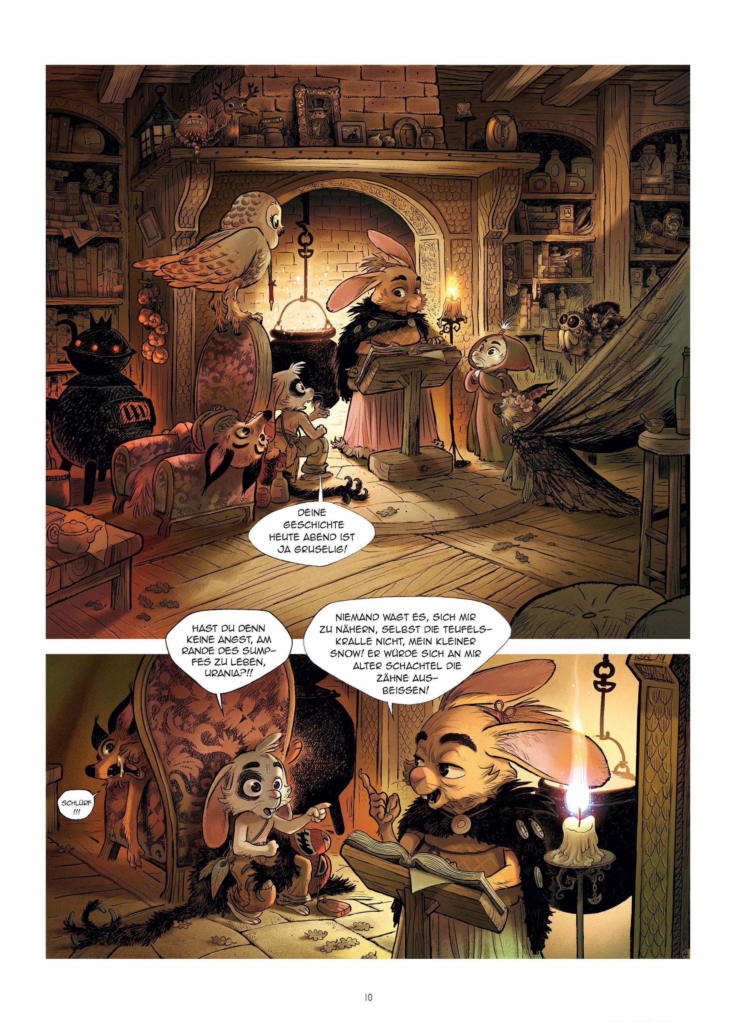 Tief, tief im Wald liegen vielen geheime Orte verborgen. Aber keiner ist so magisch wie die Hütte der Hexe Urania. Die weise Hasendame hilft den Tieren des Waldes bei all ihren Problemen, den kleinen und den großen. Aber vor allem hilft sie den Tierkindern, die sich jeden Samstag in ihrer Hütte versammeln: Honey, dem vegetarischen Fuchs, den Hasen Snow und Winter, der tollpatschigen Fledermaus Moon und sogar Shadow, der kleinen Spinne, die ein bisschen gruselig ist, obwohl sie es nur gut meint...