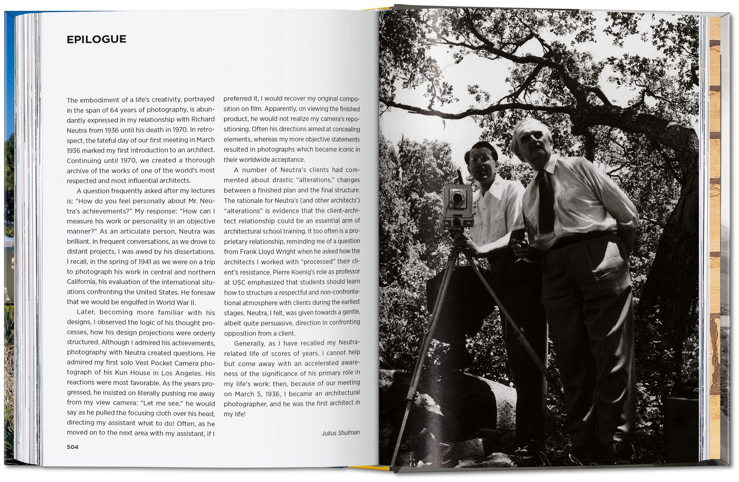 In diesem Band werden mehr als 100 Werke von Richard Neutra (Privathäuser, Schulen und öffentliche Gebäude) anhand von Hunderten von Fotografien vorgestellt, darunter Aufnahmen von Julius Shulman und anderen bekannten Fotografen.