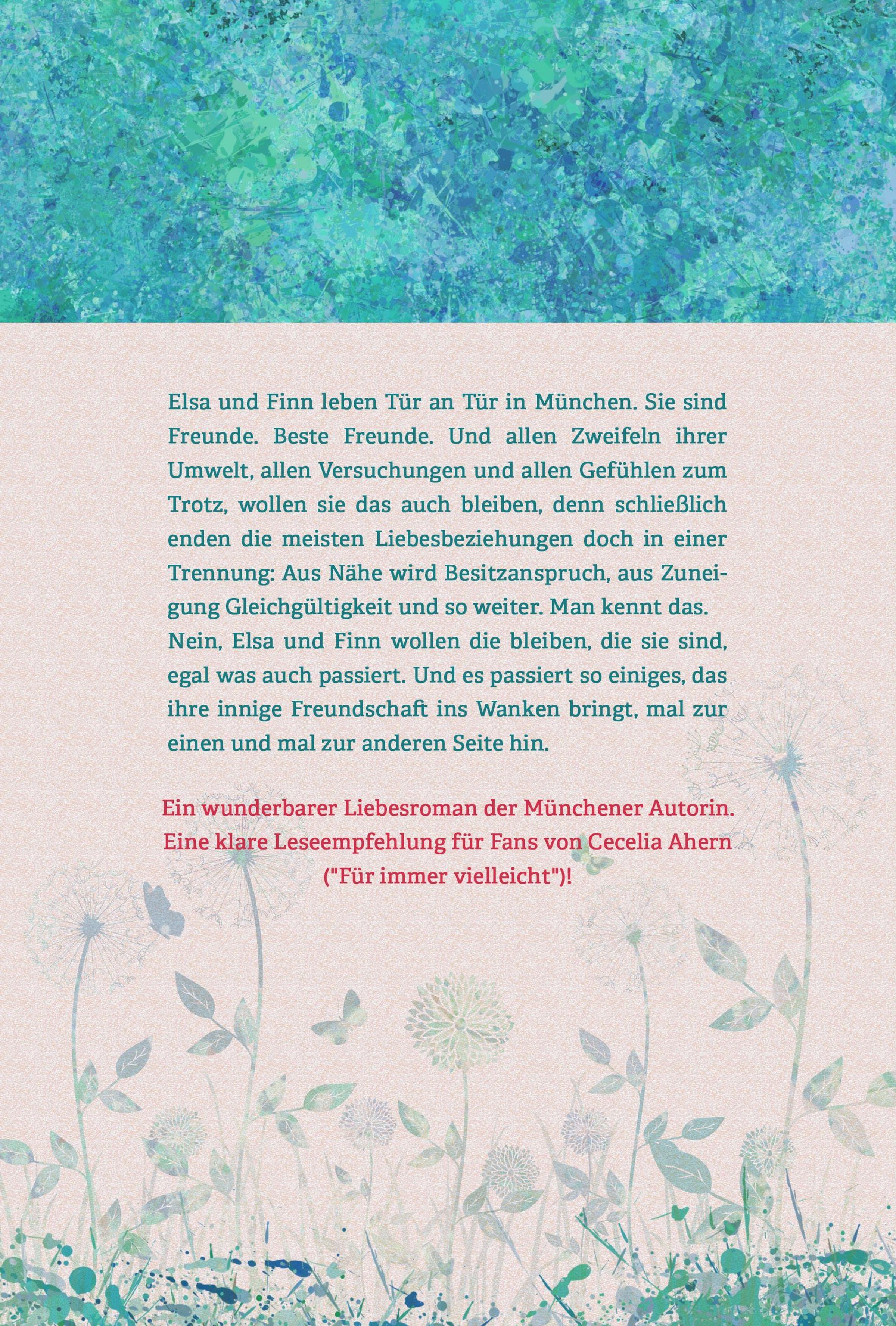 Elsa und Finn leben Tür an Tür in München. Sie sind Freunde. Beste Freunde. Und allen Zweifeln ihrer Umwelt, allen Versuchungen und allen Gefühlen zum Trotz, wollen sie das auch bleiben, denn schließlich enden die meisten Liebesbeziehungen doch in einer Trennung: Aus Nähe wird Besitzanspruch, aus Zuneigung Gleichgültigkeit und so weiter. Man kennt das.