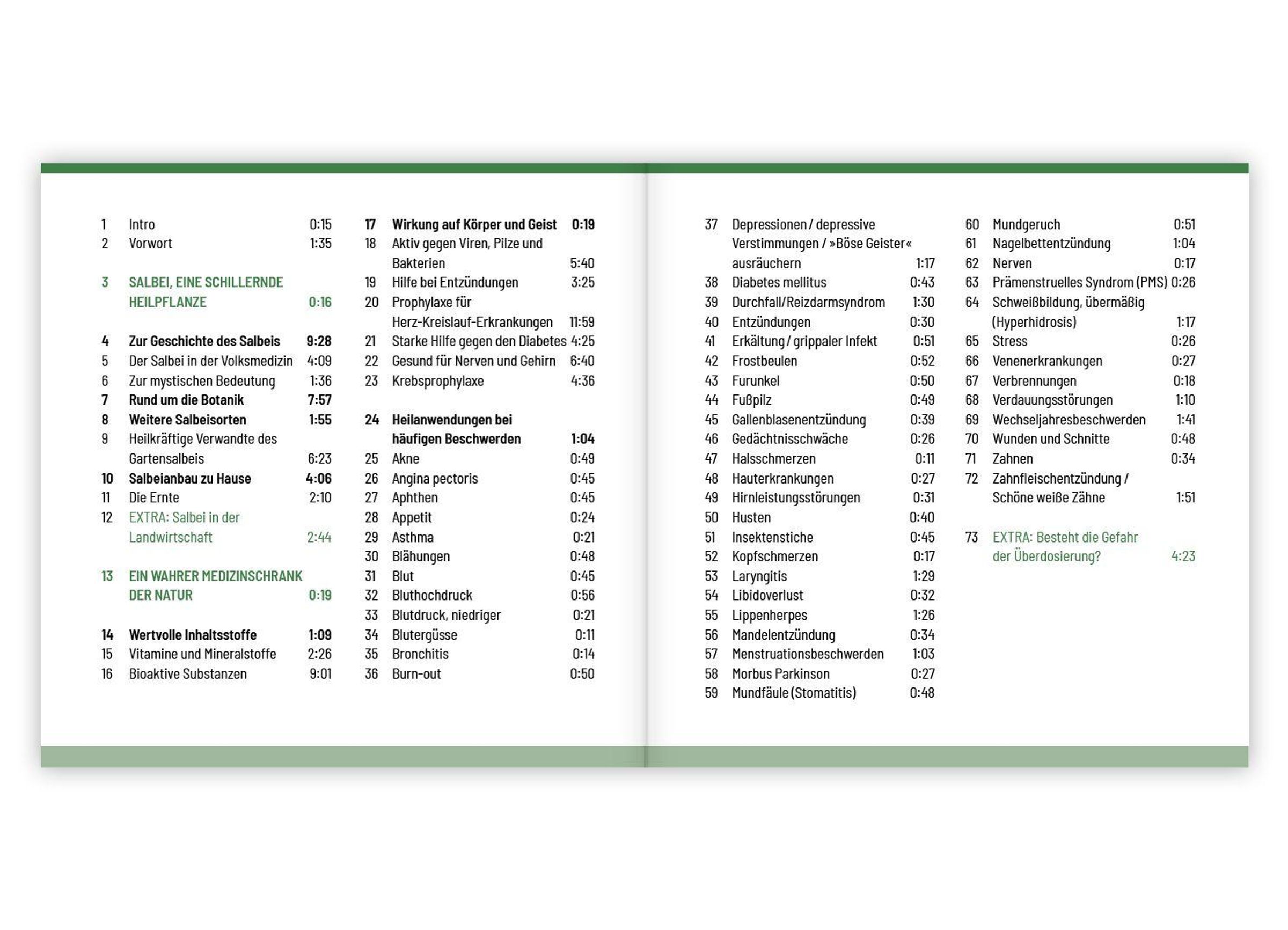 - Rezepte und Anwendungen bei Halsbeschwerden, Magen-Darm-Erkrankungen, Hautproblemen, für die Atemwege, zur Zahn- und Mundhygiene u. v. m.