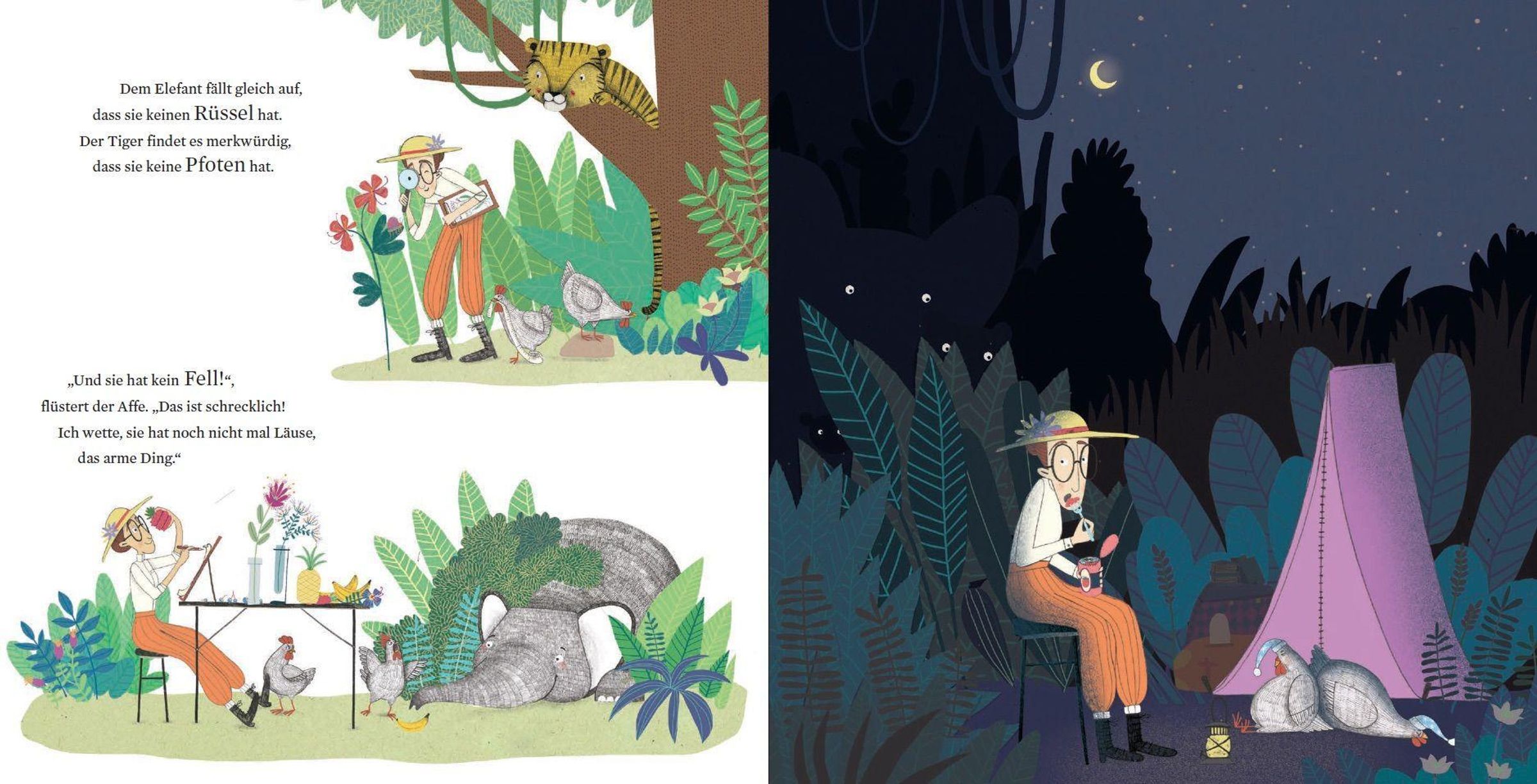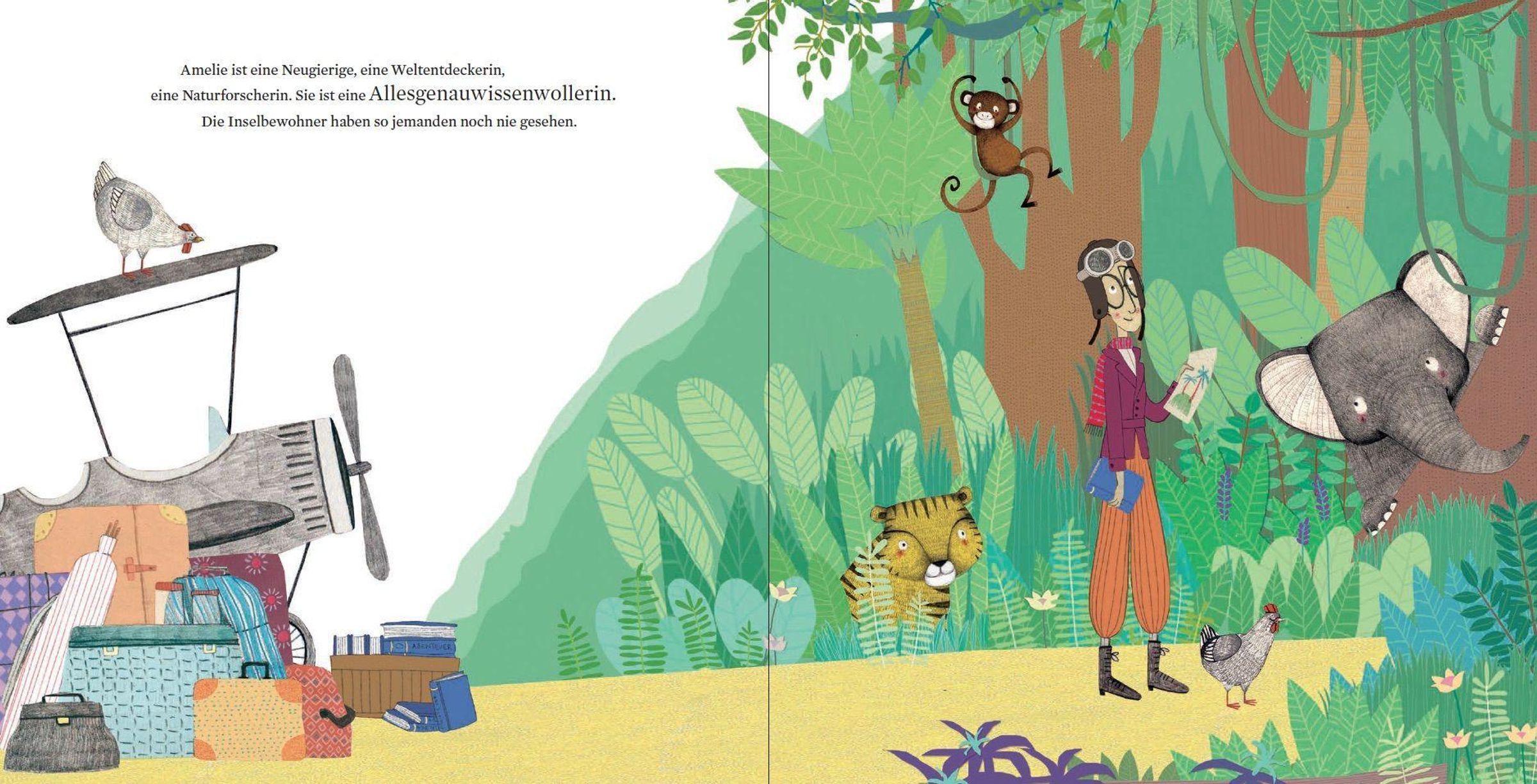 Amelie ist eine Allesgenauwissenwollerin - und damit ist sie nicht allein. Als sie auf einer noch unerforschten Insel landet, wird sie plötzlich selbst zum Forschungsobjekt. Affe, Tiger und Elefant sind wie sie - unglaublich neugierig. Sie nähern sich an, sie lernen sich kennen, sie forschen gemeinsam. Bis Amelie eines Tages Abschied nimmt. Doch ein Teil von ihr bleibt für immer auf der Insel!