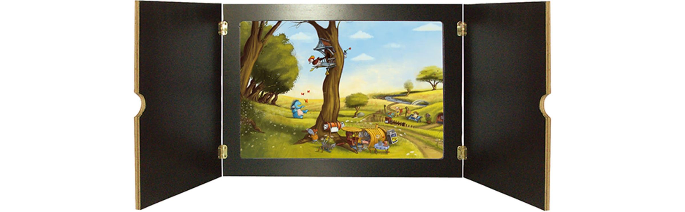 Ein Kamishibai besteht aus einem aufstellbaren Rahmen, in dem die einzelnen Bildkarten hinein gestellt und während des Erzählens nacheinander herausgezogen werden. Dabei kann das Erzähltempo den Bedürfnissen der Kinder angepasst werden und es bleibt genug Zeit und Raum für eigene Entdeckungen. Erzieher, Pädagogen und Lehrer können das bildgestützte Erzählen für die Sprachförderung und die lebendige Präsentation von Sachthemen in Kita und Grundschule nutzen.
