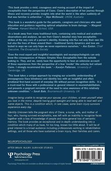 Part One describes our current knowledge of encephalitis, of perception and memory, and the theoretical aspects of prosopagnosia and semantic memory. Part Two, told in Claire's own words, is an account of her life before her illness, her memories of the early days in hospital, an account of the treatment she received at the Oliver Zangwill Centre, and her description of the long-term consequences of encephalitis. Claire's profound insights, clear writing style, and powerful portrayal of her feelings provide us with a moving insider's view of her condition. These chapters also contain additional commentary from Barbara Wilson, providing further detail about the condition, treatment possibilities, potential outcomes, and follow-up options.